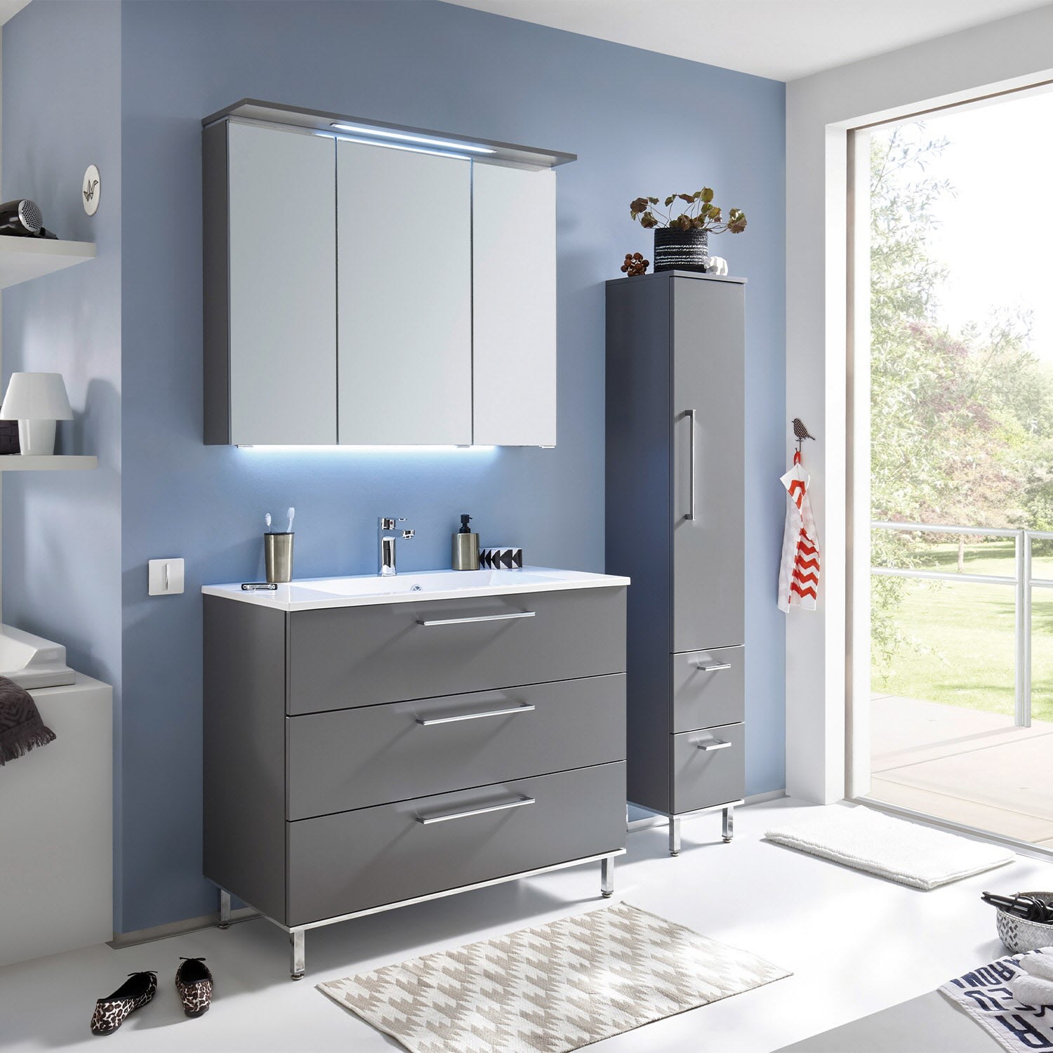 Puris Quada Spiegelschrank 120 cm mit Gesimsboden inkl. LED-Beleuchtung