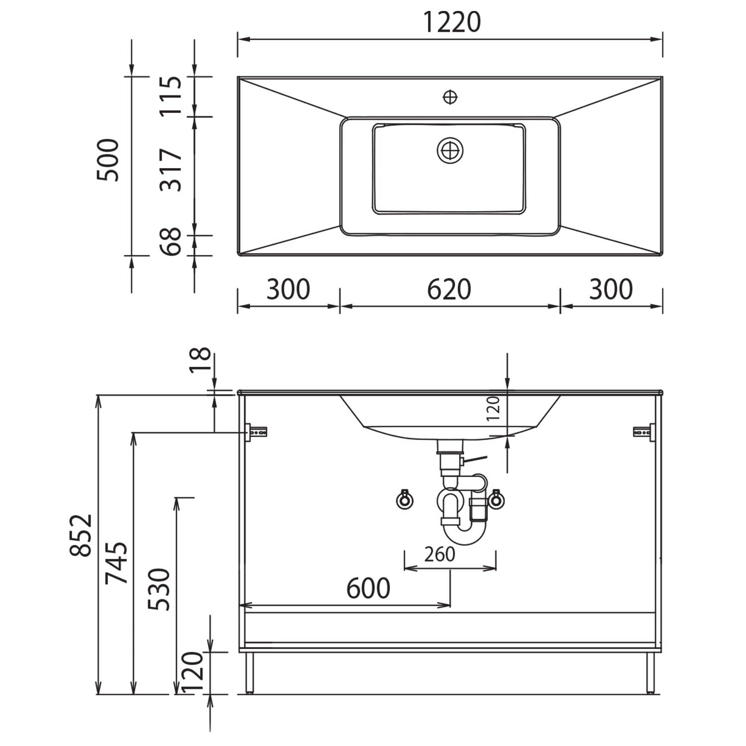 - oberer Auszug mit Siphonausschnitt