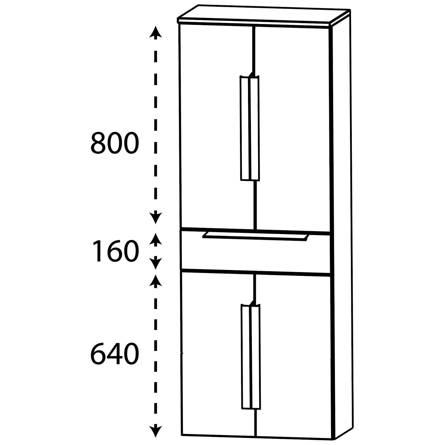 Puris Rounds Hochschrank 60 x 30 x 162,8 cm mit 1 Schubkasten, 4 Türen, Griff 338