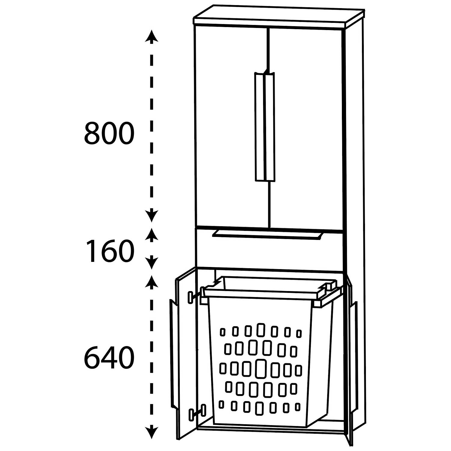 Wäscheauszug,1 Schubkasten, 2 Türen