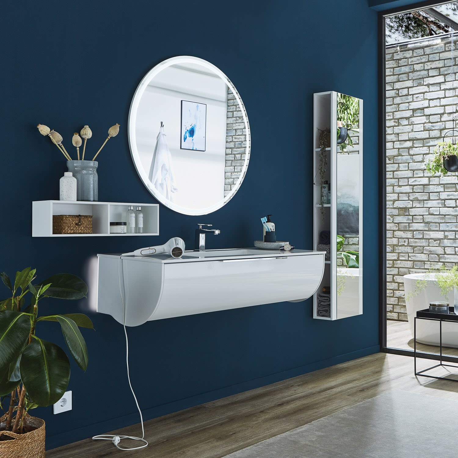 Puris Rounds Hochschrank-Regal 40 cm mit Spiegeltür, Türanschlag rechts