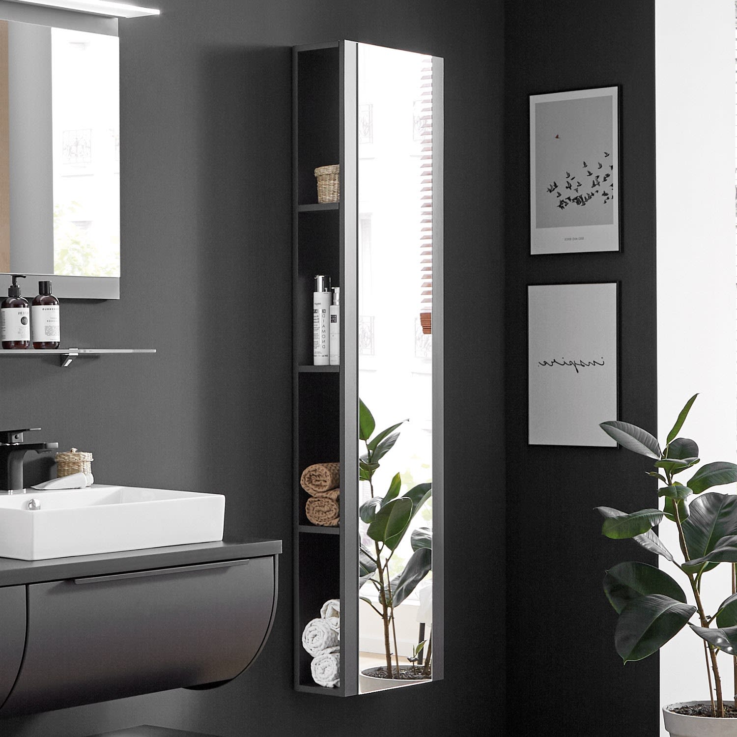 Puris Rounds Hochschrank-Regal 40 cm mit Spiegeltür, Türanschlag rechts