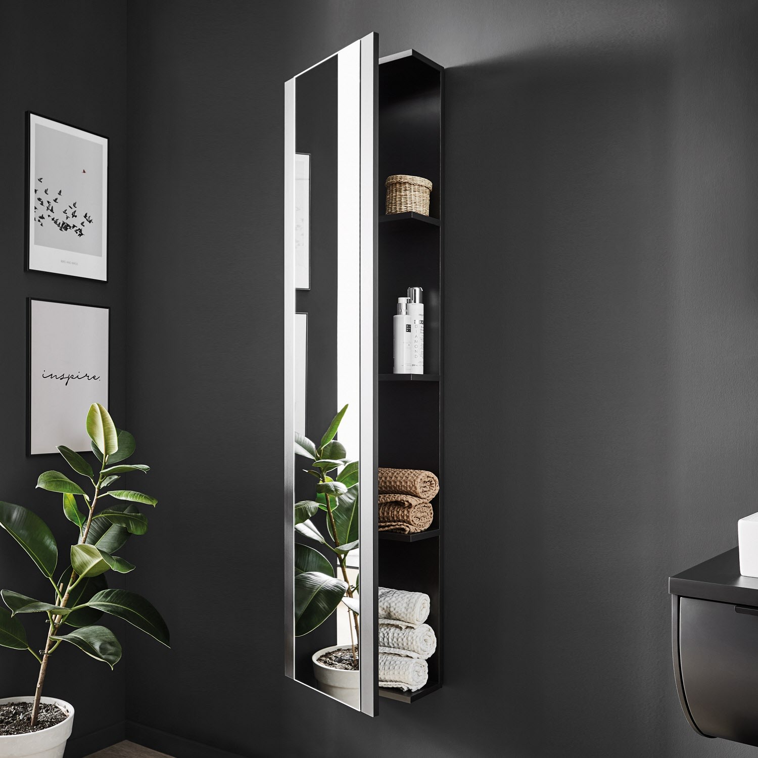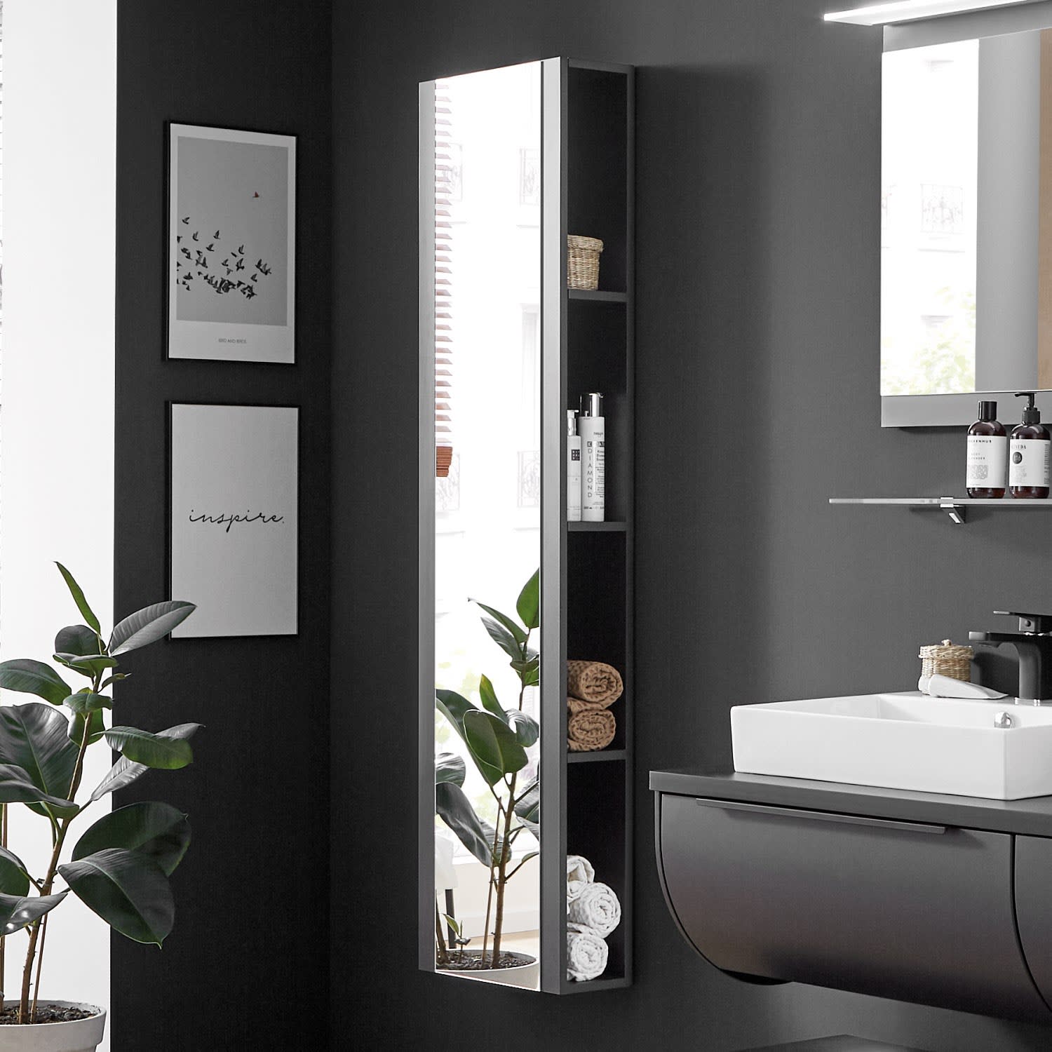 Puris Rounds Hochschrank-Regal 40 cm mit Spiegeltür, Türanschlag links