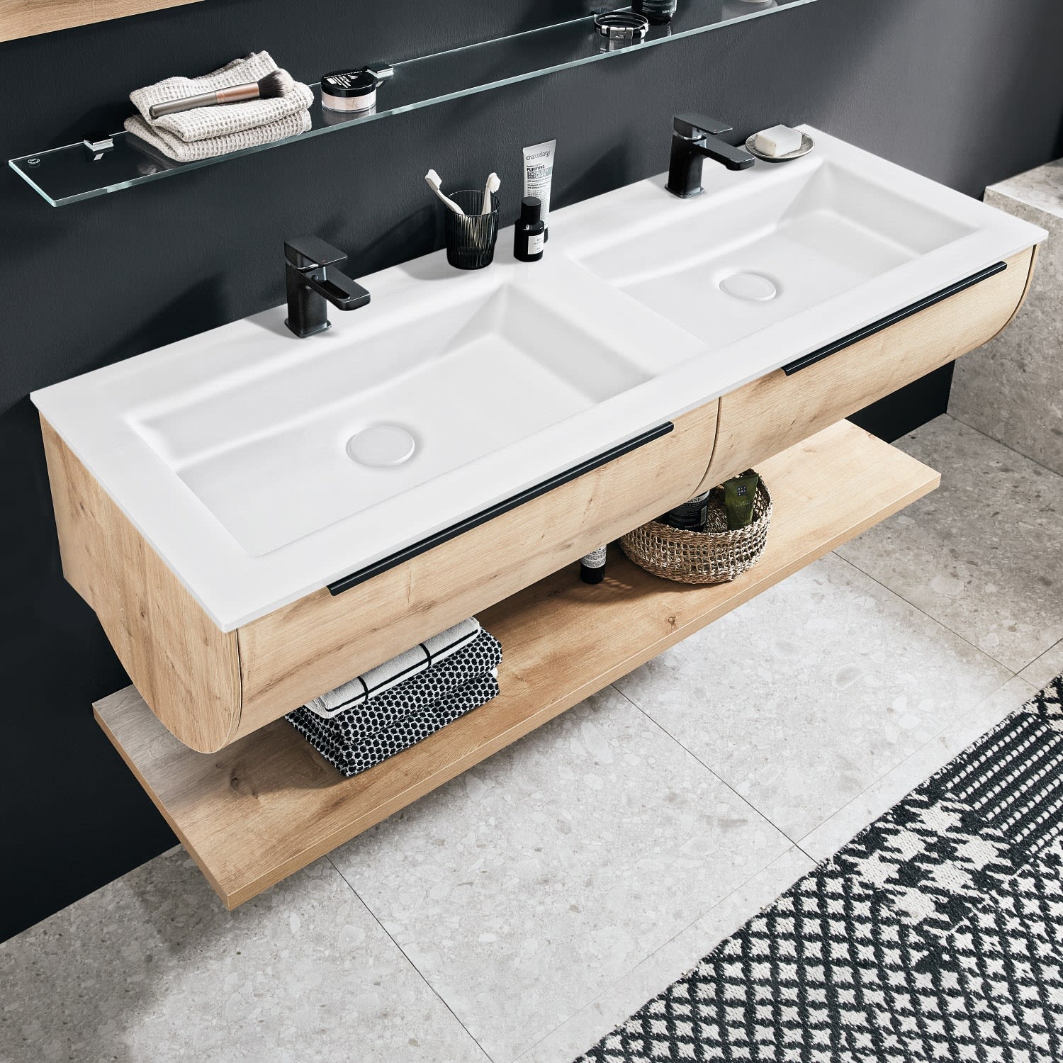 Puris Rounds Glas-Doppelwaschtisch 143,2 cm