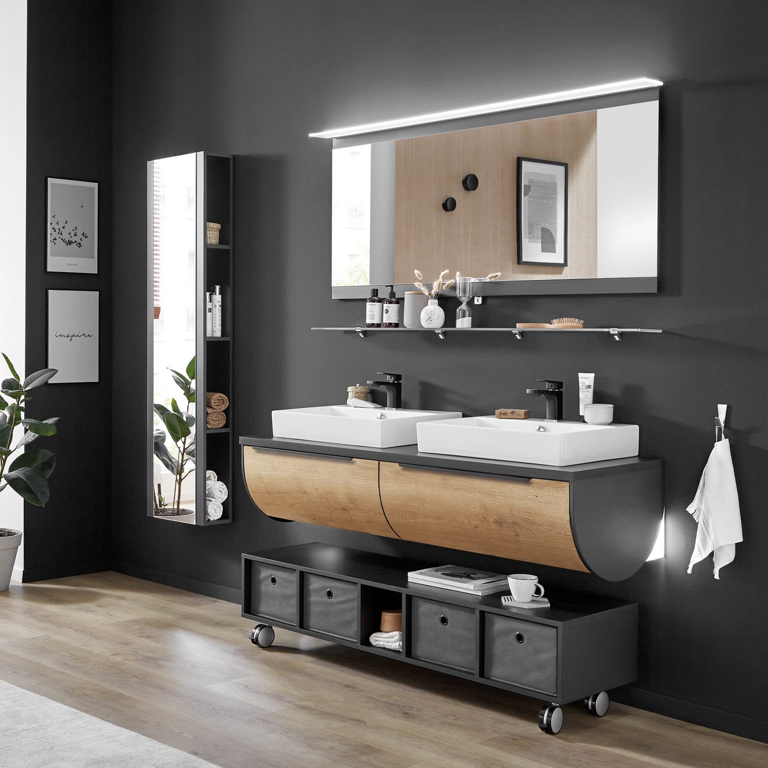 Puris Rounds Badspiegel 143,4 cm mit LED-Aufbau-Flächenleuchte