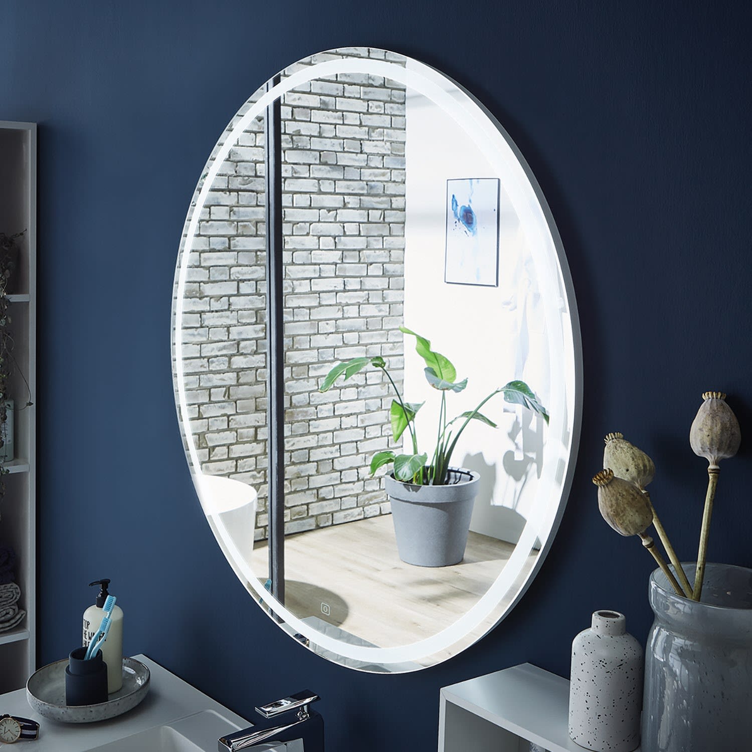 Puris Rounds Badspiegel rund 90 cm mit umlaufender LED-Beleuchtung