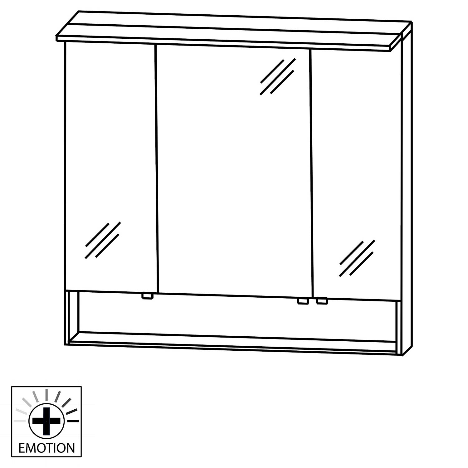 Puris Rounds Spiegelschrank 90 cm mit 3 Türen und LED-Flächenleuchte