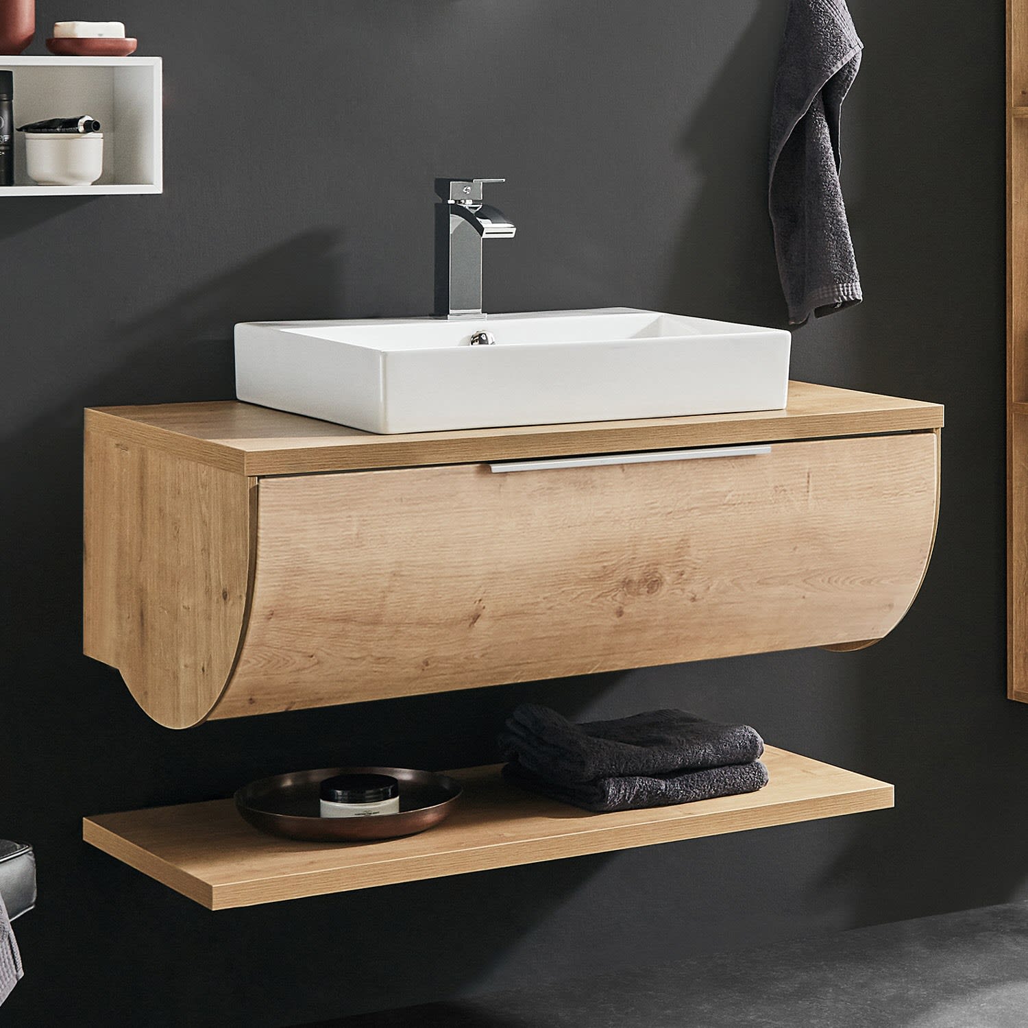 Puris Rounds Waschtischunterschrank für Aufsatzwaschtisch 92 cm mit 1 Auszug, Griff 338