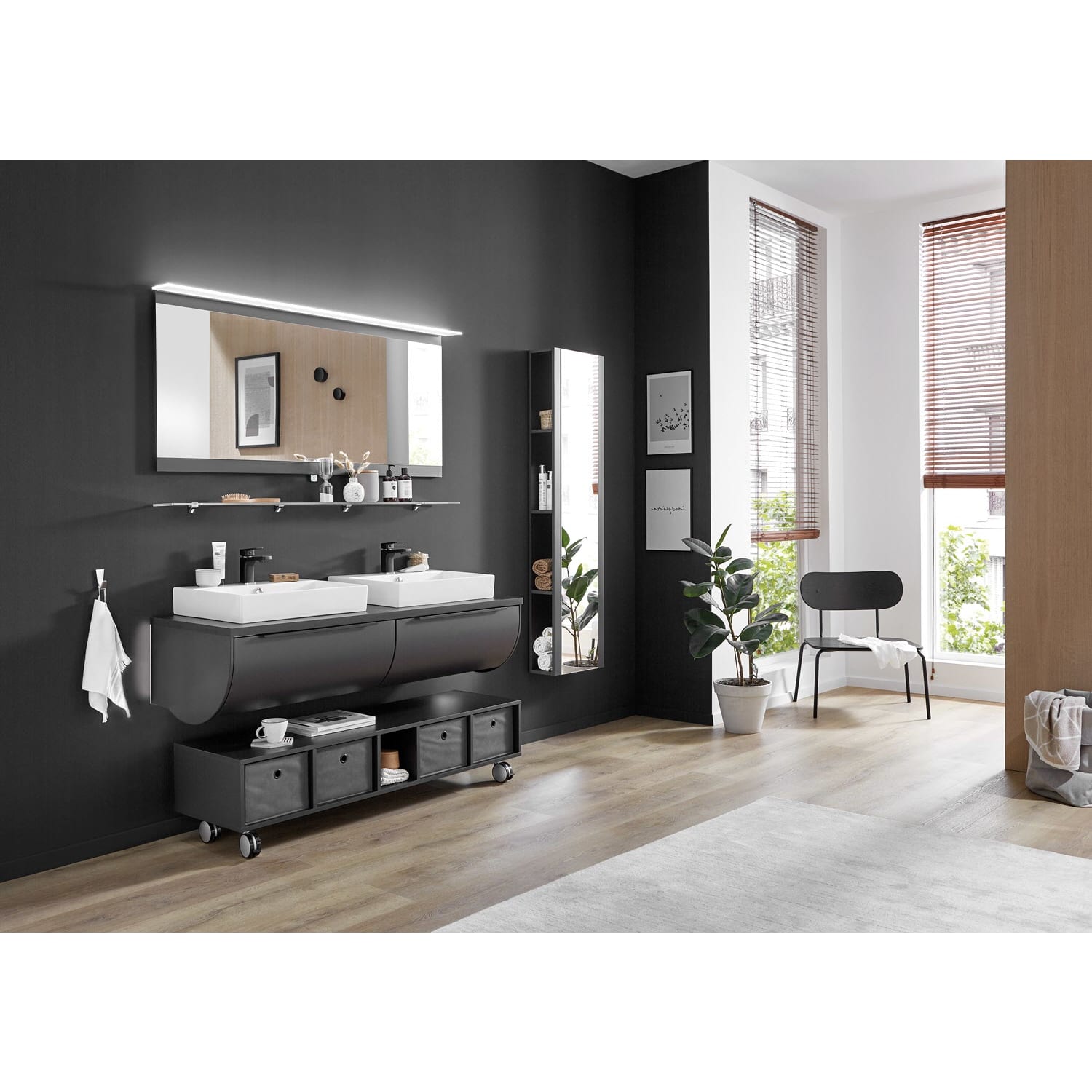 Puris Rounds Waschtischunterschrank für Doppel- Aufsatzwaschtisch 142 cm mit 1 Auszug, Griff 339, mit LED-Beleuchtung