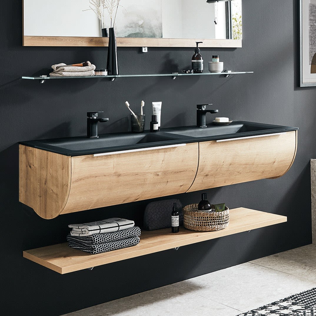 Puris Rounds Waschtischunterschrank für Doppel-Möbelwaschtisch 142 cm mit 2 Auszügen, Griff 338