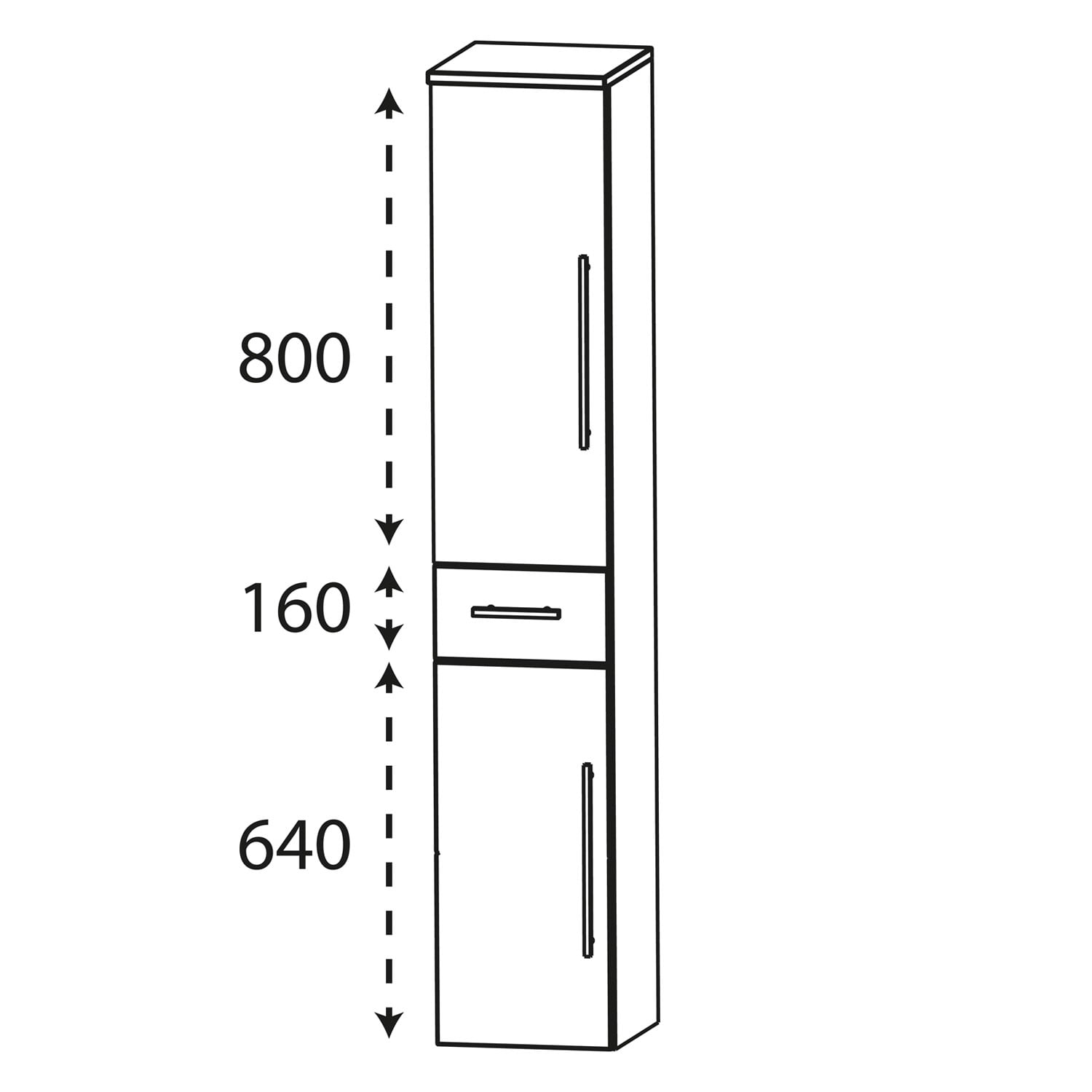 Puris Speed Hochschrank 30 cm mit 2 Türen, Anschlag links und 1 Schubkasten