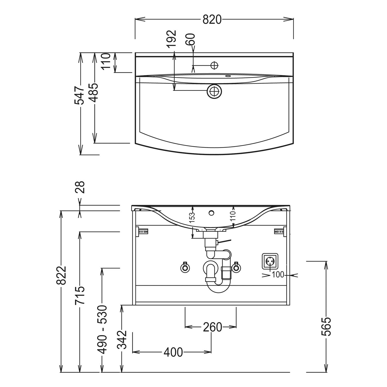 - mit Hahnloch mittig