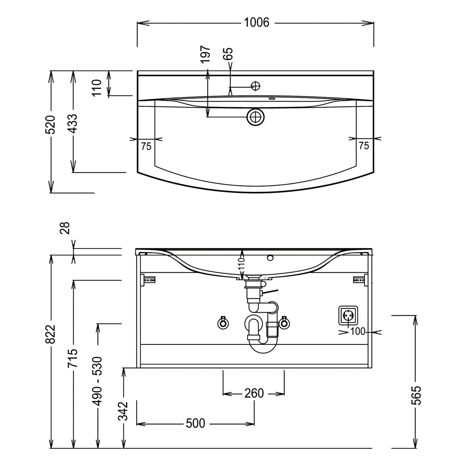 mit 1 Hahnloch und Überlauf