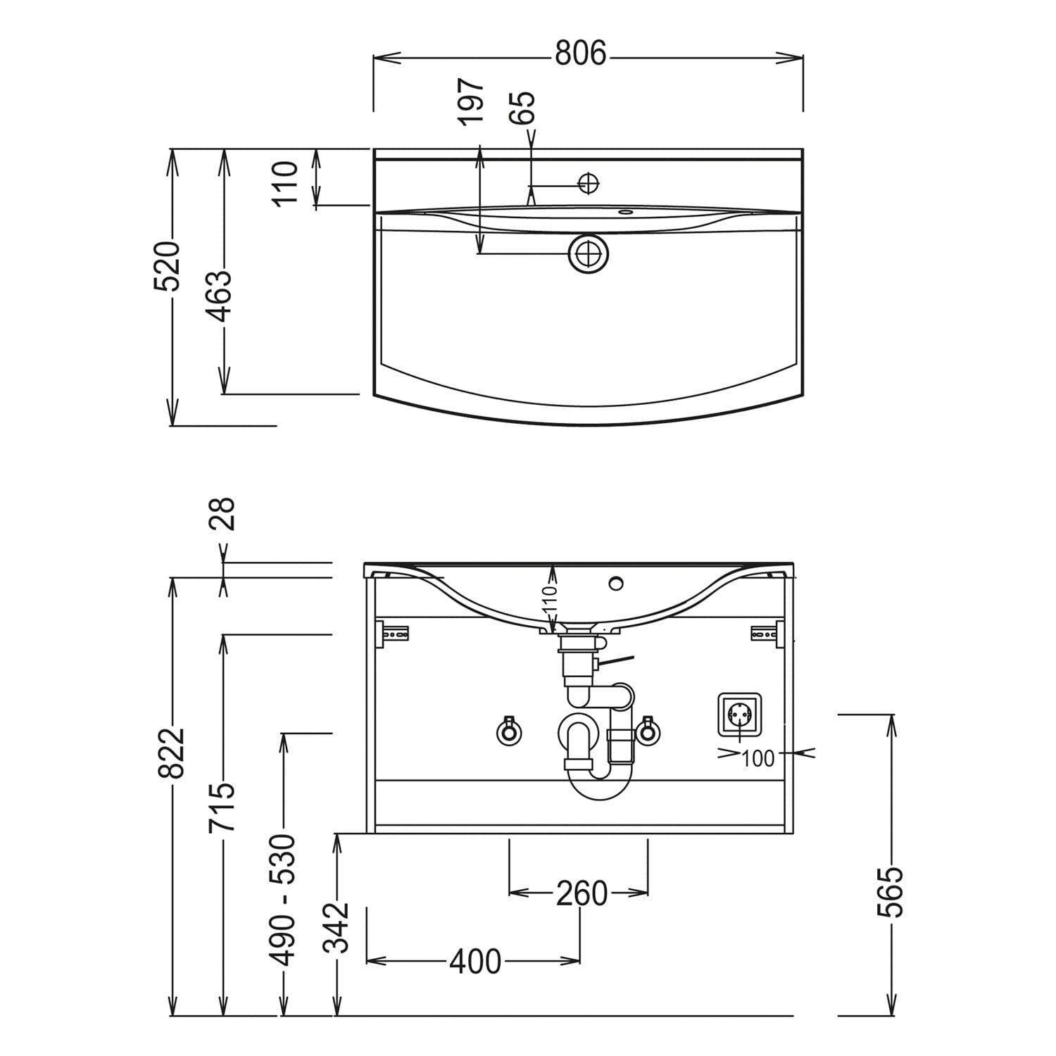 mit 1 Hahnloch und Überlauf