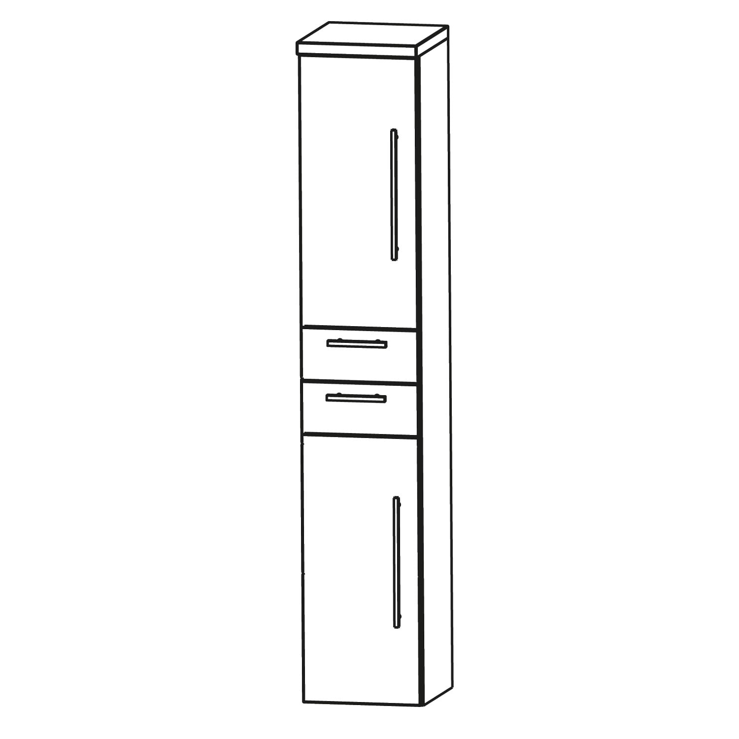 Puris Star Line Hochschrank 40 x 30 x 162,8 cm mit 2 Schubkästen und 2 Türen, Anschlag links, Griff 338