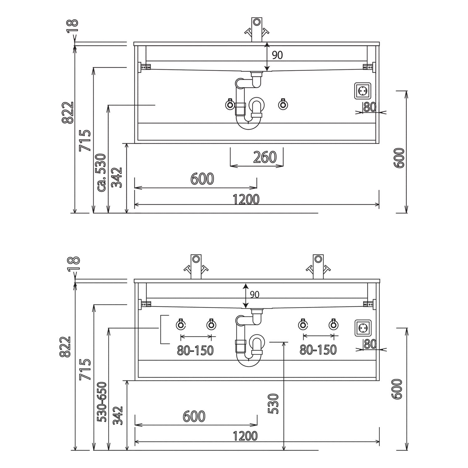 Puris Star Line Waschtischunterschrank 120 x 47 x 48 cm, für Mineralgusswaschtische, mit 2 Auszügen, Griff 294