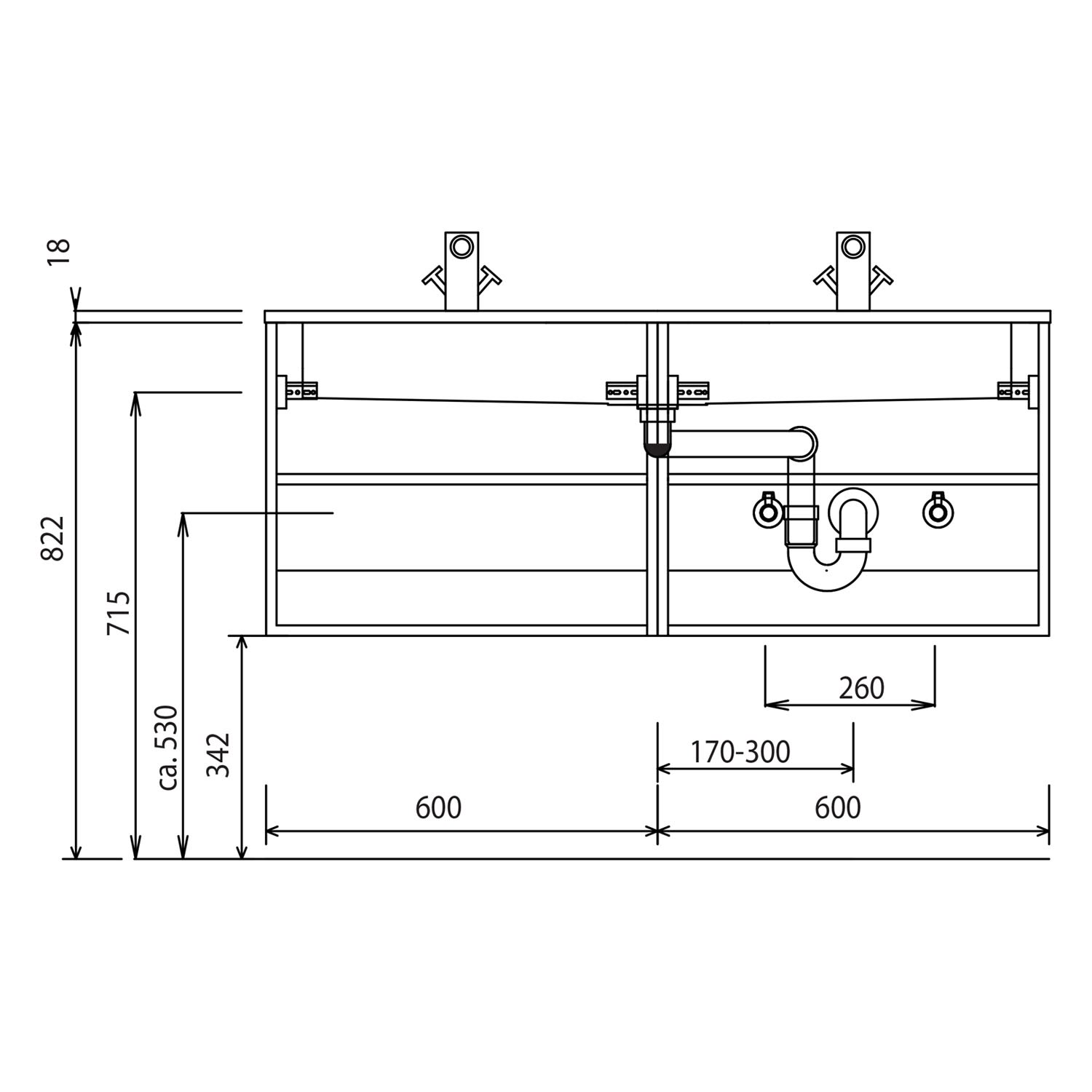 Puris Star Line Waschtischunterschrank 120 x 47 x 48 cm, für Mineralgusswaschtische, mit 4 Auszügen, Griff 294