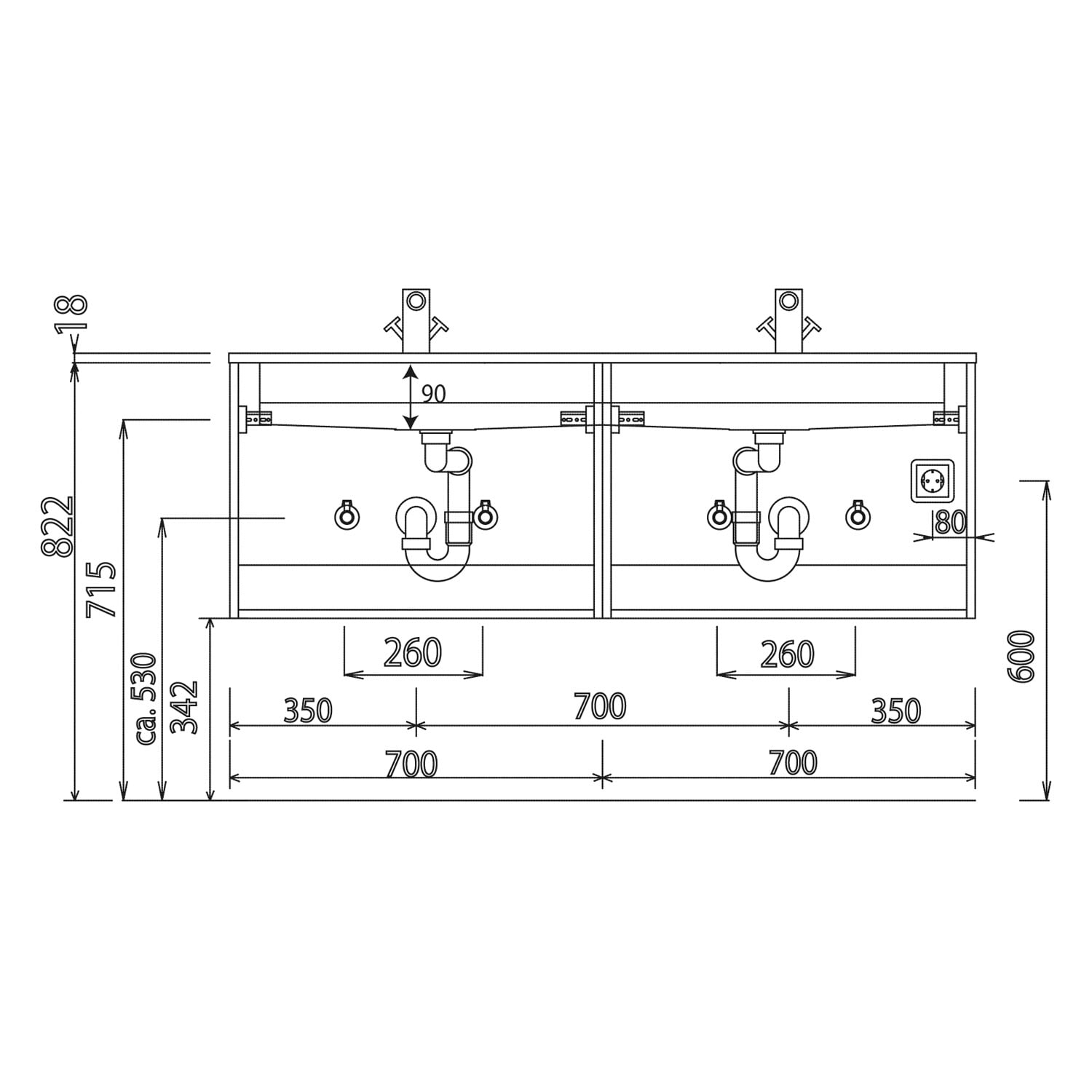 Puris Star Line Waschtischunterschrank 140 x 47 x 48 cm, für Mineralgusswaschtische, mit 4 Auszügen, Griff 294