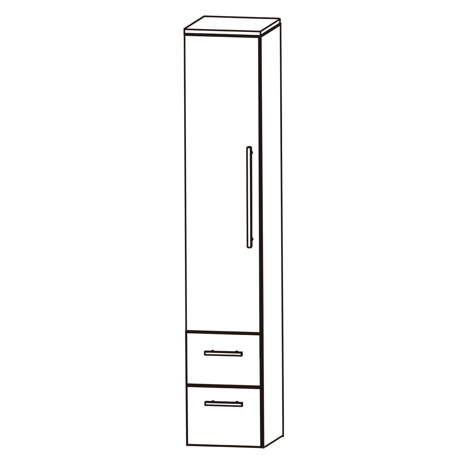 Puris Swing Hochschrank 30 x 30 x 162,8 cm mit 2 Auszügen und 1 Tür, Türanschlag links