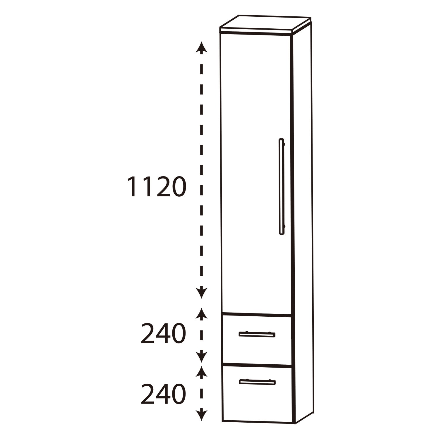 1 Tür, Anschlag links, 2 Auszüge