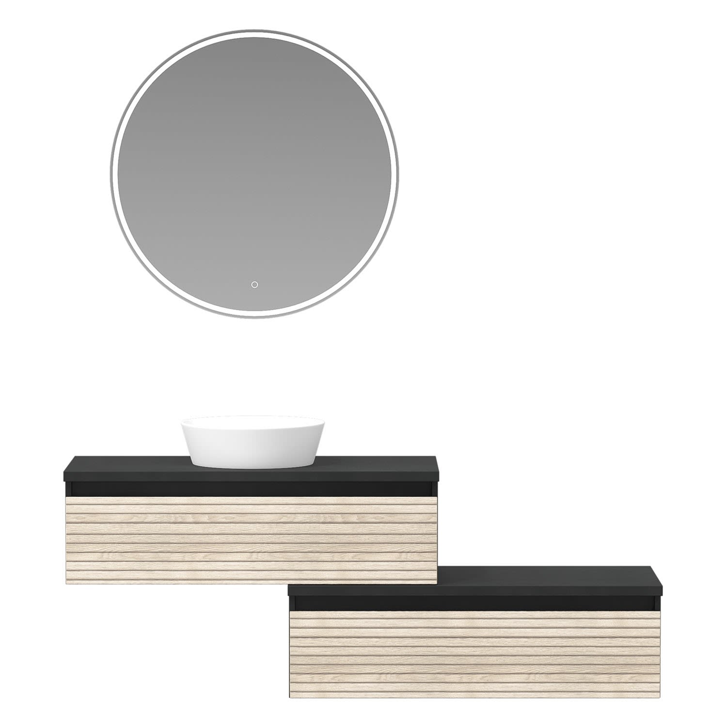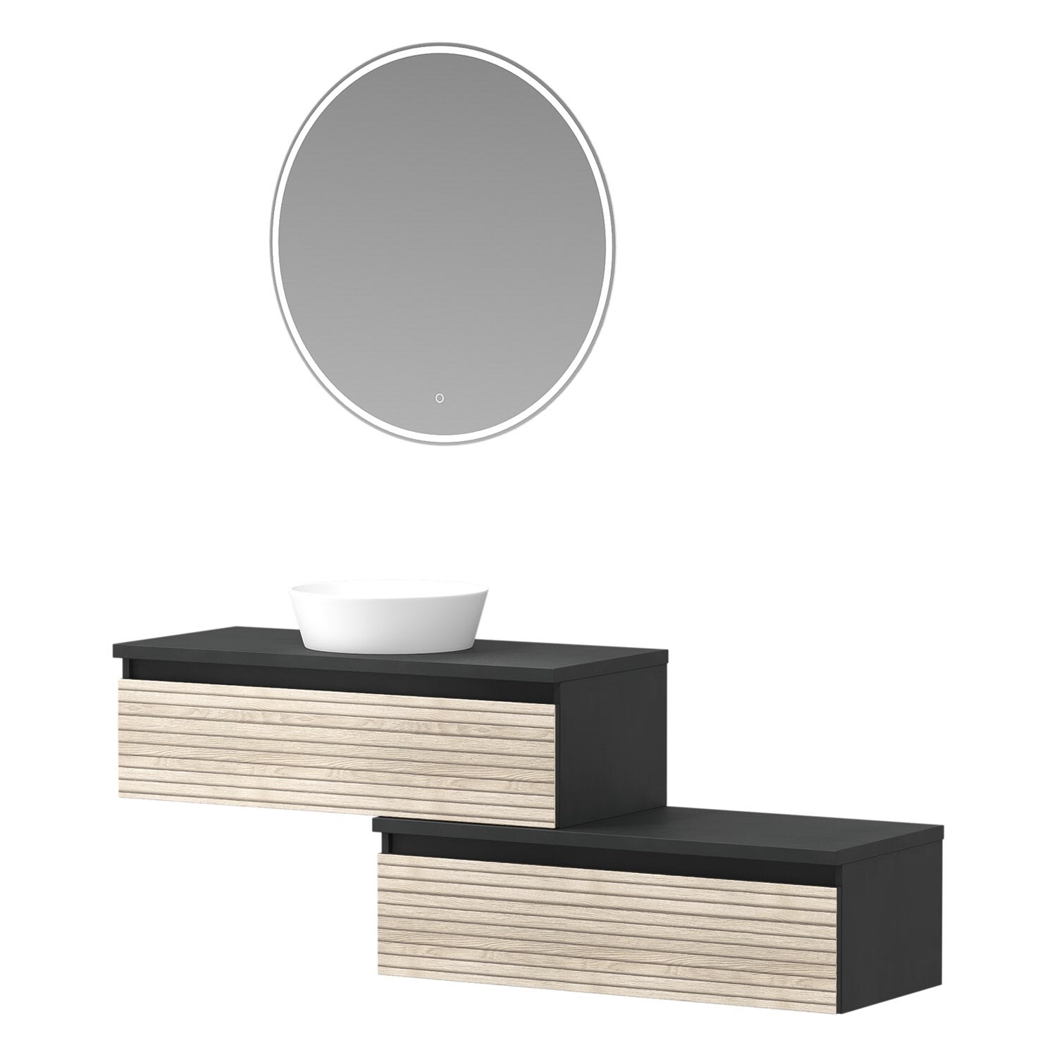 Die Vialli-Kollektion vereint mediterranes Flair mit praktischer Funktionalität und bietet Ihnen eine Vielzahl von Vorteilen und Alleinstellungsmerkmalen, die Ihr Badezimmer zu einem echten Hingucker machen. Mit den grifflosen Fronten schaffen Sie eine moderne und minimalistische Atmosphäre in Ihrem Bad. Zusammen mit den Vialli Unterschränken ermöglichen sie Ihnen ein individuelles Design, das Ihren persönlichen Stil widerspiegelt. Die formschönen Aufsatzwaschtische in Schwarz oder Weiß fügen sich nahtlos in das Gesamtbild ein und verleihen Ihrem Badezimmer einen eleganten Touch. Für eine visuelle Erweiterung des Raumes sorgen die organischen Flächenspiegel mit Spiegelheizung. Ob rahmenlos oder mit einem schwarzen Akzent, sie sind nicht nur praktisch, sondern auch ästhetisch ansprechend.