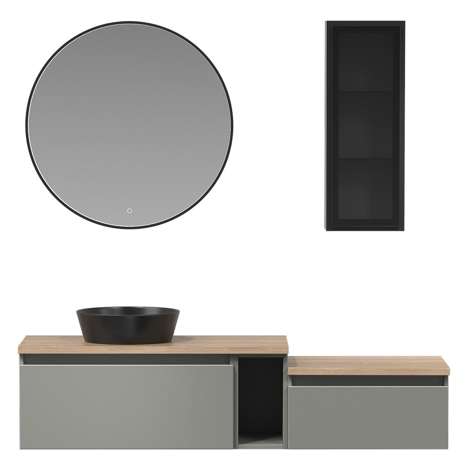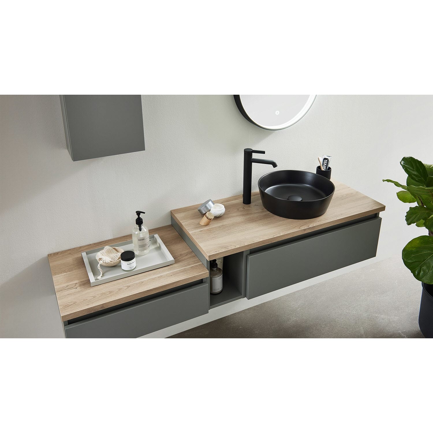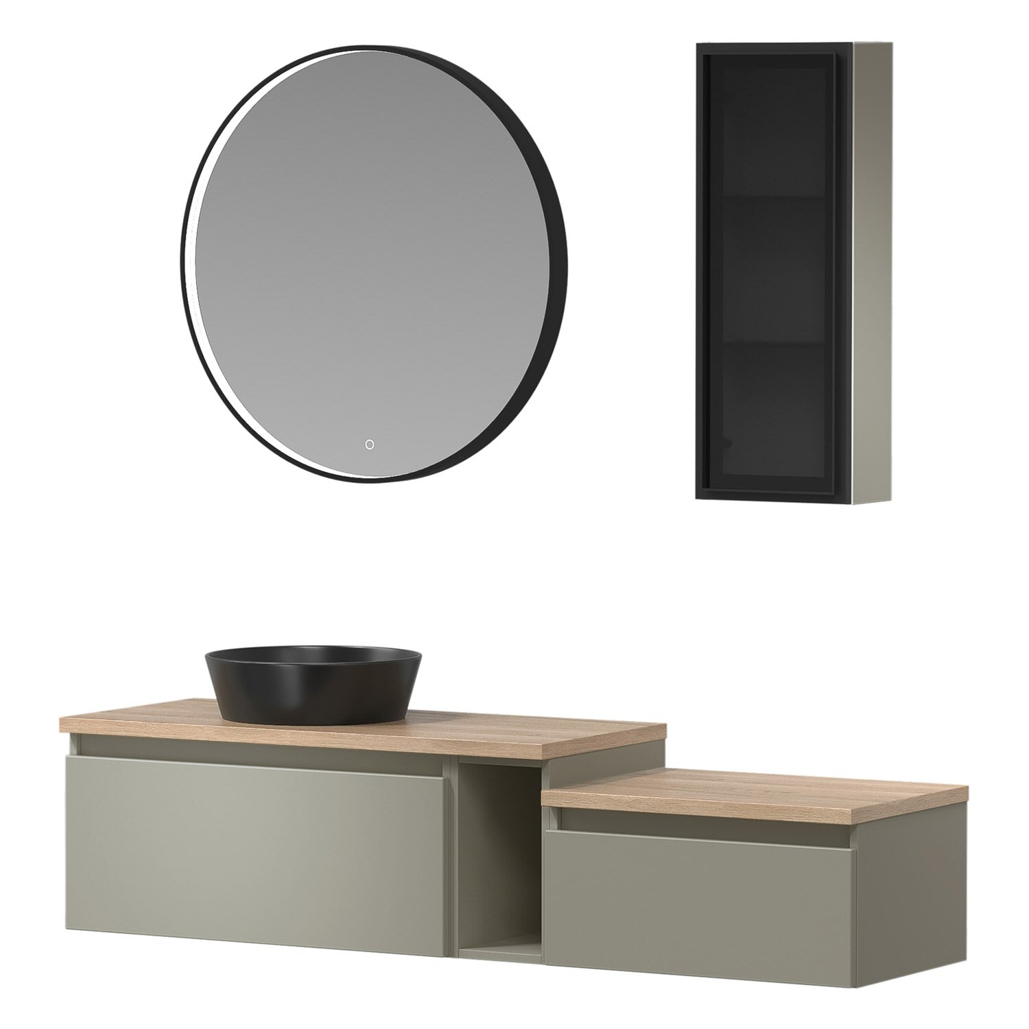 Die Vialli-Kollektion vereint mediterranes Flair mit praktischer Funktionalität und bietet Ihnen eine Vielzahl von Vorteilen und Alleinstellungsmerkmalen, die Ihr Badezimmer zu einem echten Hingucker machen. Mit den grifflosen Fronten schaffen Sie eine moderne und minimalistische Atmosphäre in Ihrem Bad. Zusammen mit den Vialli Unterschränken ermöglichen sie Ihnen ein individuelles Design, das Ihren persönlichen Stil widerspiegelt. Die formschönen Aufsatzwaschtische in Schwarz oder Weiß fügen sich nahtlos in das Gesamtbild ein und verleihen Ihrem Badezimmer einen eleganten Touch. Für eine visuelle Erweiterung des Raumes sorgen die organischen Flächenspiegel mit Spiegelheizung. Ob rahmenlos oder mit einem schwarzen Akzent, sie sind nicht nur praktisch, sondern auch ästhetisch ansprechend.