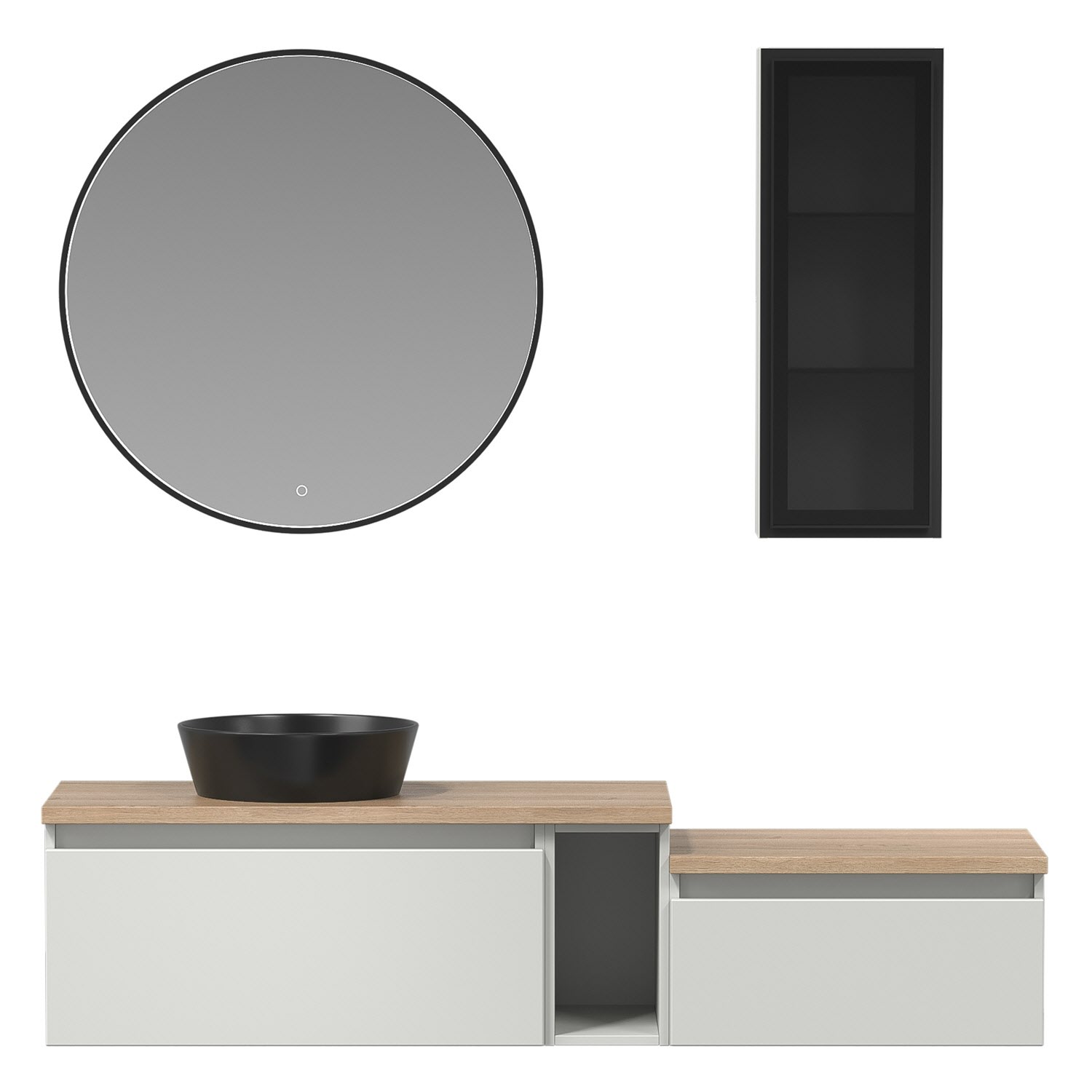 Die Vialli-Kollektion vereint mediterranes Flair mit praktischer Funktionalität und bietet Ihnen eine Vielzahl von Vorteilen und Alleinstellungsmerkmalen, die Ihr Badezimmer zu einem echten Hingucker machen. Mit den grifflosen Fronten schaffen Sie eine moderne und minimalistische Atmosphäre in Ihrem Bad. Zusammen mit den Vialli Unterschränken ermöglichen sie Ihnen ein individuelles Design, das Ihren persönlichen Stil widerspiegelt. Die formschönen Aufsatzwaschtische in Schwarz oder Weiß fügen sich nahtlos in das Gesamtbild ein und verleihen Ihrem Badezimmer einen eleganten Touch. Für eine visuelle Erweiterung des Raumes sorgen die organischen Flächenspiegel mit Spiegelheizung. Ob rahmenlos oder mit einem schwarzen Akzent, sie sind nicht nur praktisch, sondern auch ästhetisch ansprechend.