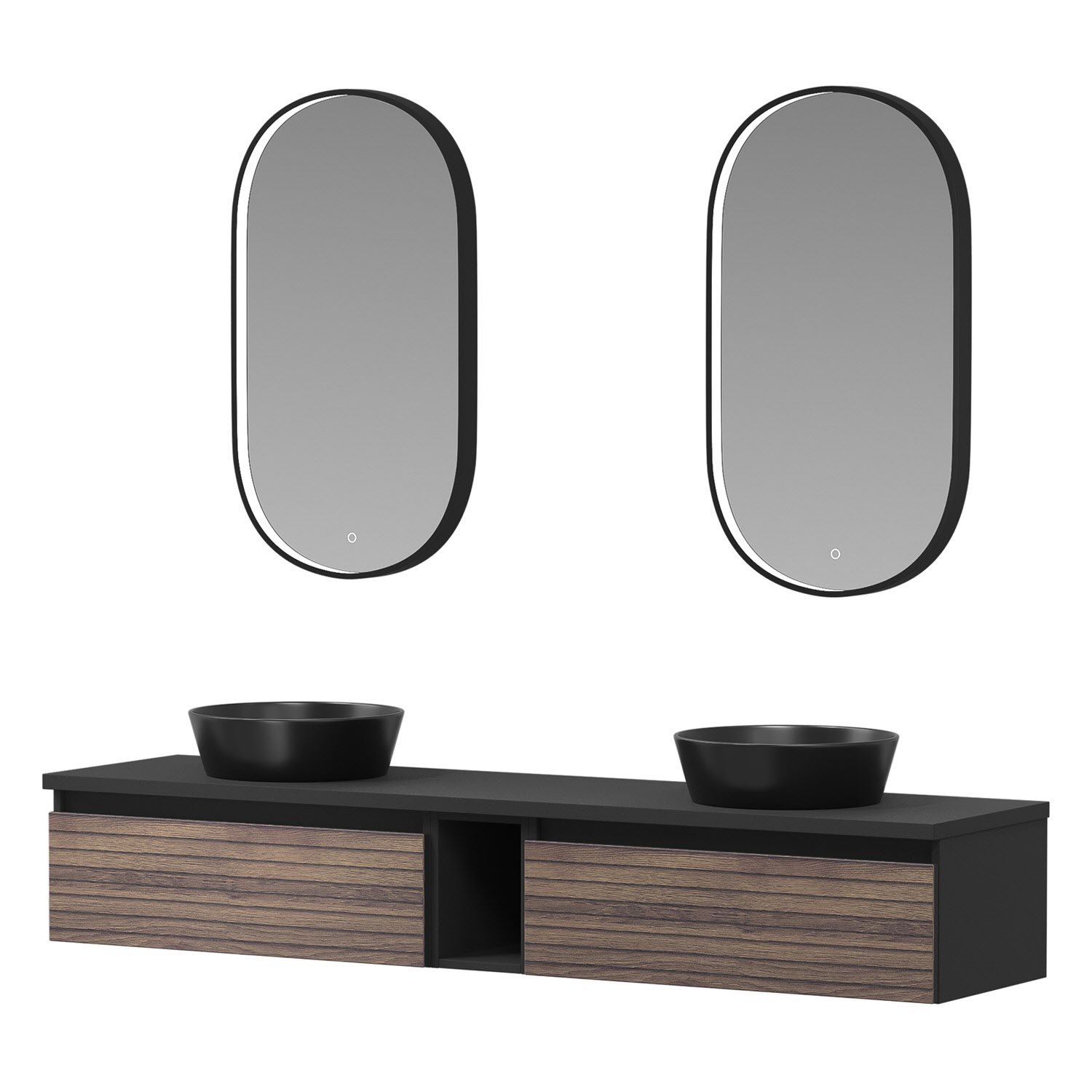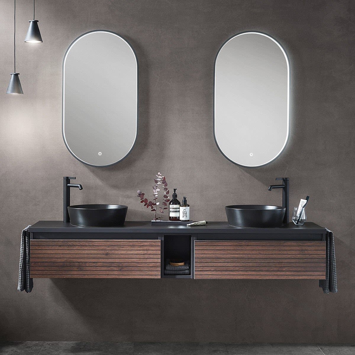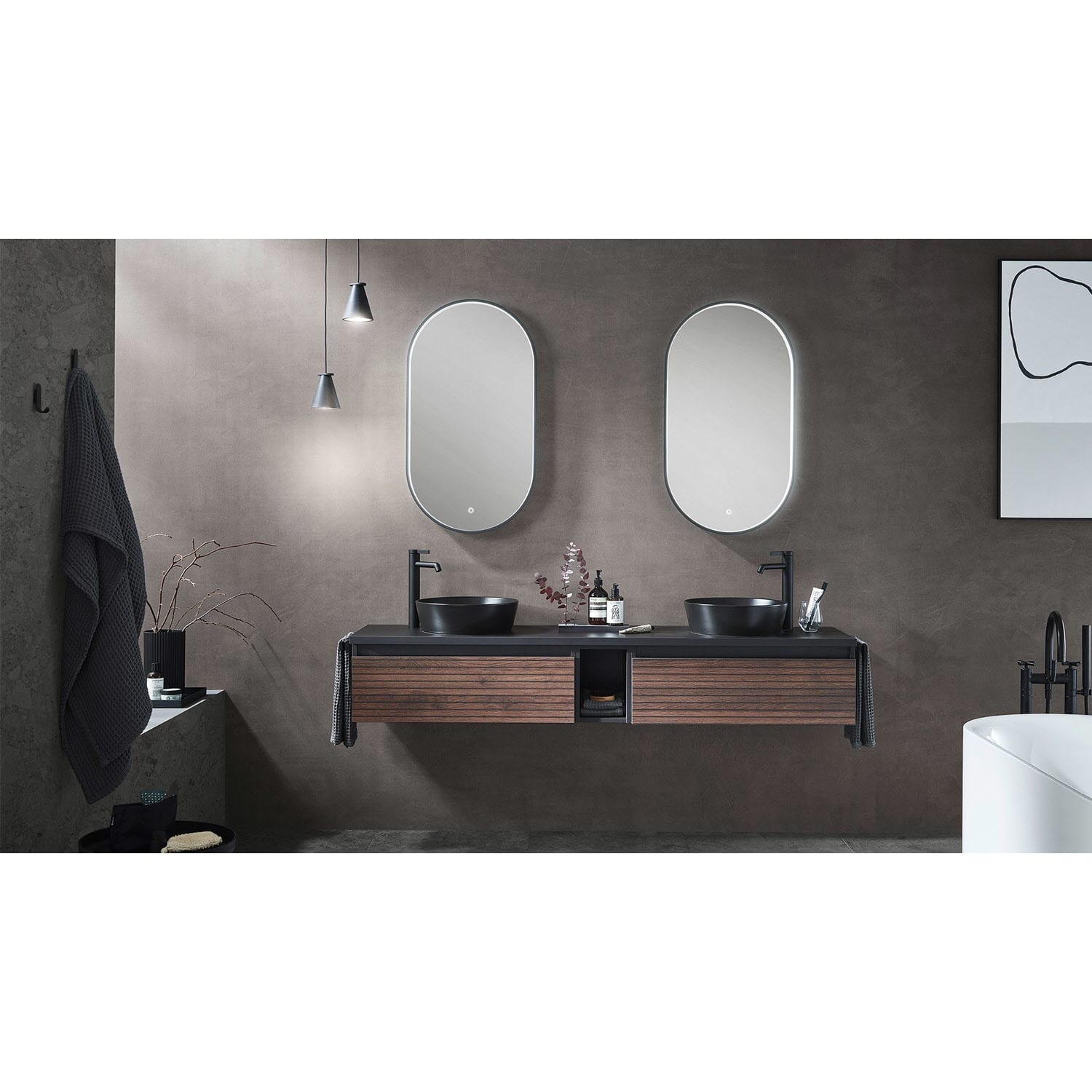 Die Vialli-Kollektion vereint mediterranes Flair mit praktischer Funktionalität und bietet Ihnen eine Vielzahl von Vorteilen und Alleinstellungsmerkmalen, die Ihr Badezimmer zu einem echten Hingucker machen. Mit den grifflosen Fronten schaffen Sie eine moderne und minimalistische Atmosphäre in Ihrem Bad. Zusammen mit den Vialli Unterschränken ermöglichen sie Ihnen ein individuelles Design, das Ihren persönlichen Stil widerspiegelt. Die formschönen Aufsatzwaschtische in Schwarz oder Weiß fügen sich nahtlos in das Gesamtbild ein und verleihen Ihrem Badezimmer einen eleganten Touch. Für eine visuelle Erweiterung des Raumes sorgen die organischen Flächenspiegel mit Spiegelheizung. Ob rahmenlos oder mit einem schwarzen Akzent, sie sind nicht nur praktisch, sondern auch ästhetisch ansprechend.