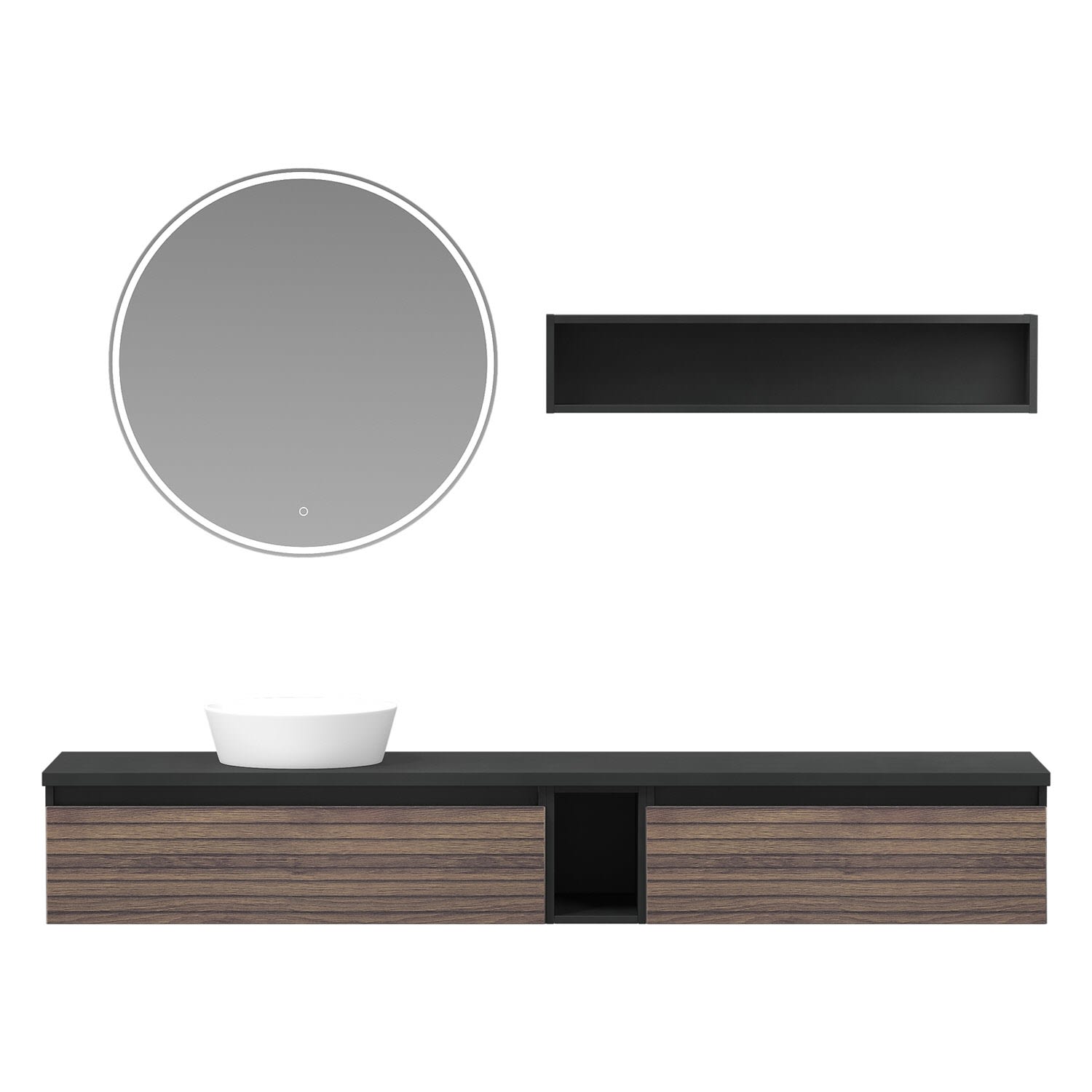Die Vialli-Kollektion vereint mediterranes Flair mit praktischer Funktionalität und bietet Ihnen eine Vielzahl von Vorteilen und Alleinstellungsmerkmalen, die Ihr Badezimmer zu einem echten Hingucker machen. Mit den grifflosen Fronten schaffen Sie eine moderne und minimalistische Atmosphäre in Ihrem Bad. Zusammen mit den Vialli Unterschränken ermöglichen sie Ihnen ein individuelles Design, das Ihren persönlichen Stil widerspiegelt. Die formschönen Aufsatzwaschtische in Schwarz oder Weiß fügen sich nahtlos in das Gesamtbild ein und verleihen Ihrem Badezimmer einen eleganten Touch. Für eine visuelle Erweiterung des Raumes sorgen die organischen Flächenspiegel mit Spiegelheizung. Ob rahmenlos oder mit einem schwarzen Akzent, sie sind nicht nur praktisch, sondern auch ästhetisch ansprechend.