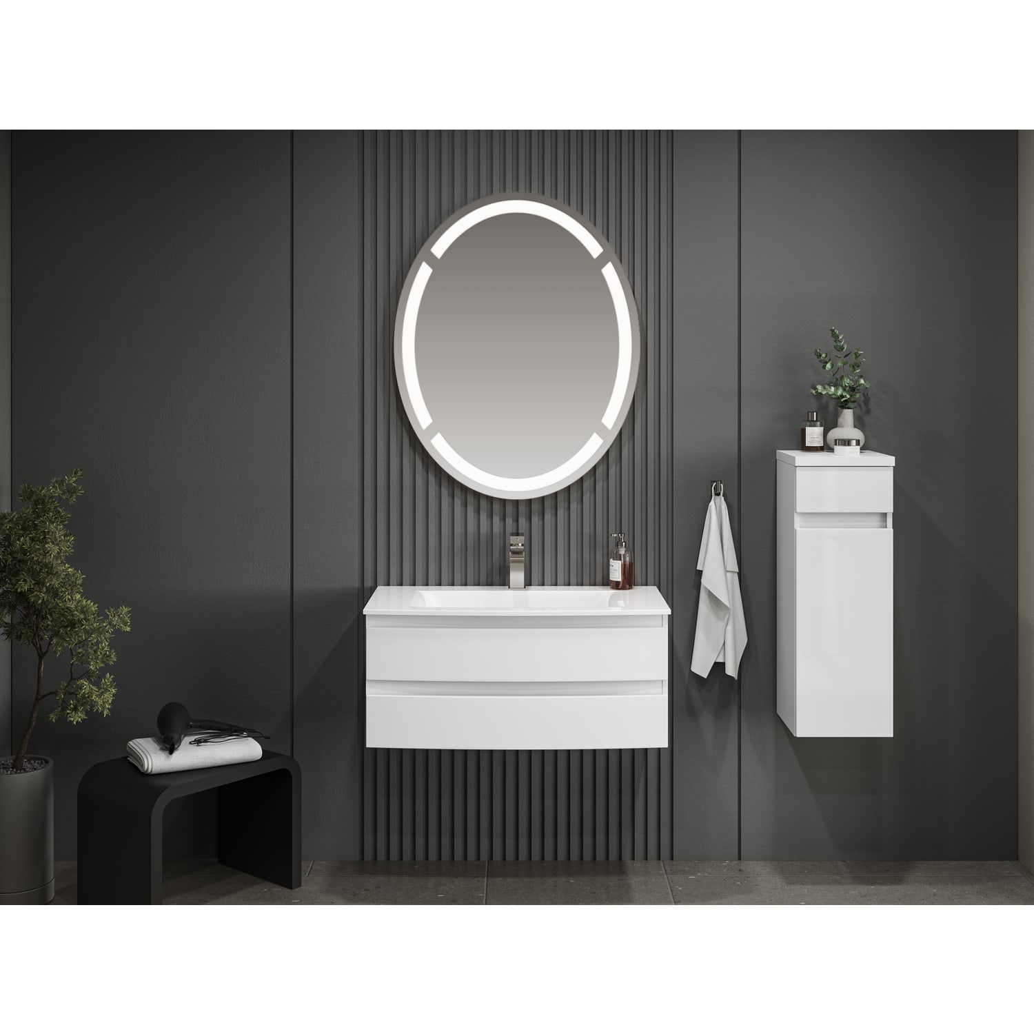 Puris Vora Badmöbel-Set 121,2 cm inkl. Spiegelschrank rund