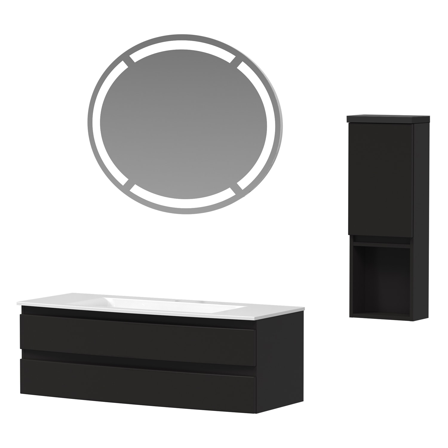 Puris Vora Badmöbel-Set 121,2 cm inkl. Flächenspiegel oval, Highboard halboffen