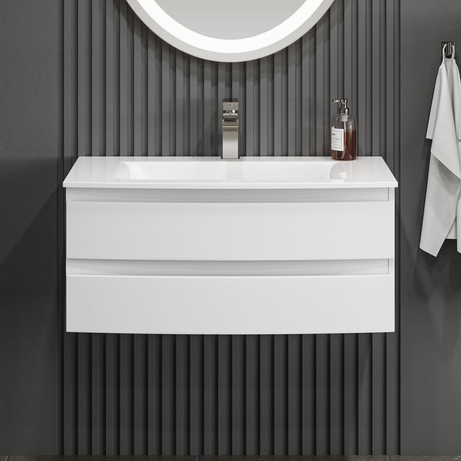 Puris Vora Badmöbel-Set 91,2 cm evermite Waschtisch mit Unterschrank