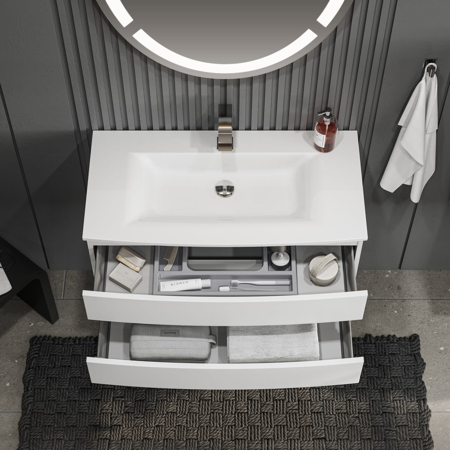 - 1 Metallschubkasten mit Einzugsdämpfung und Siphonausschnitt inkl. OrgaBase