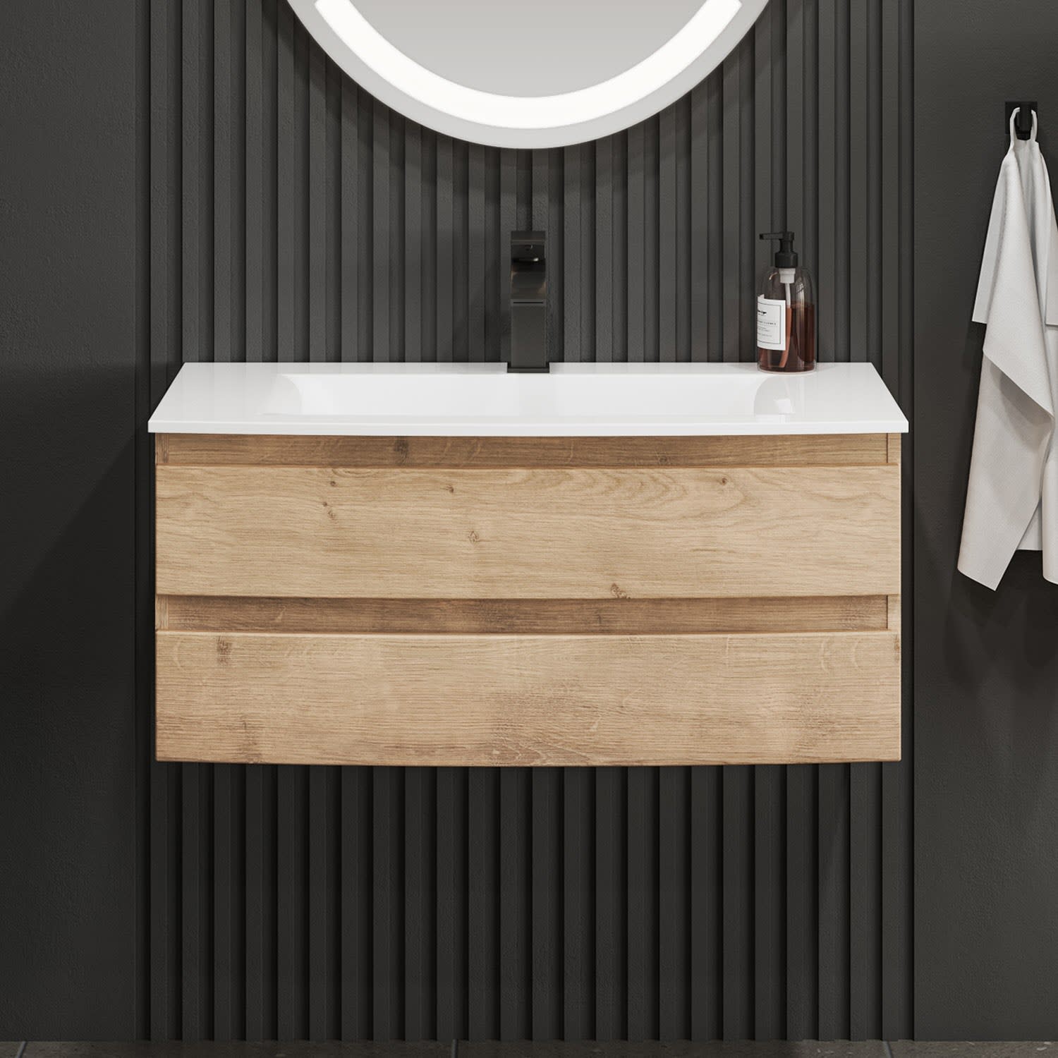 Puris Vora Badmöbel-Set 91,2 cm evermite Waschtisch mit Unterschrank
