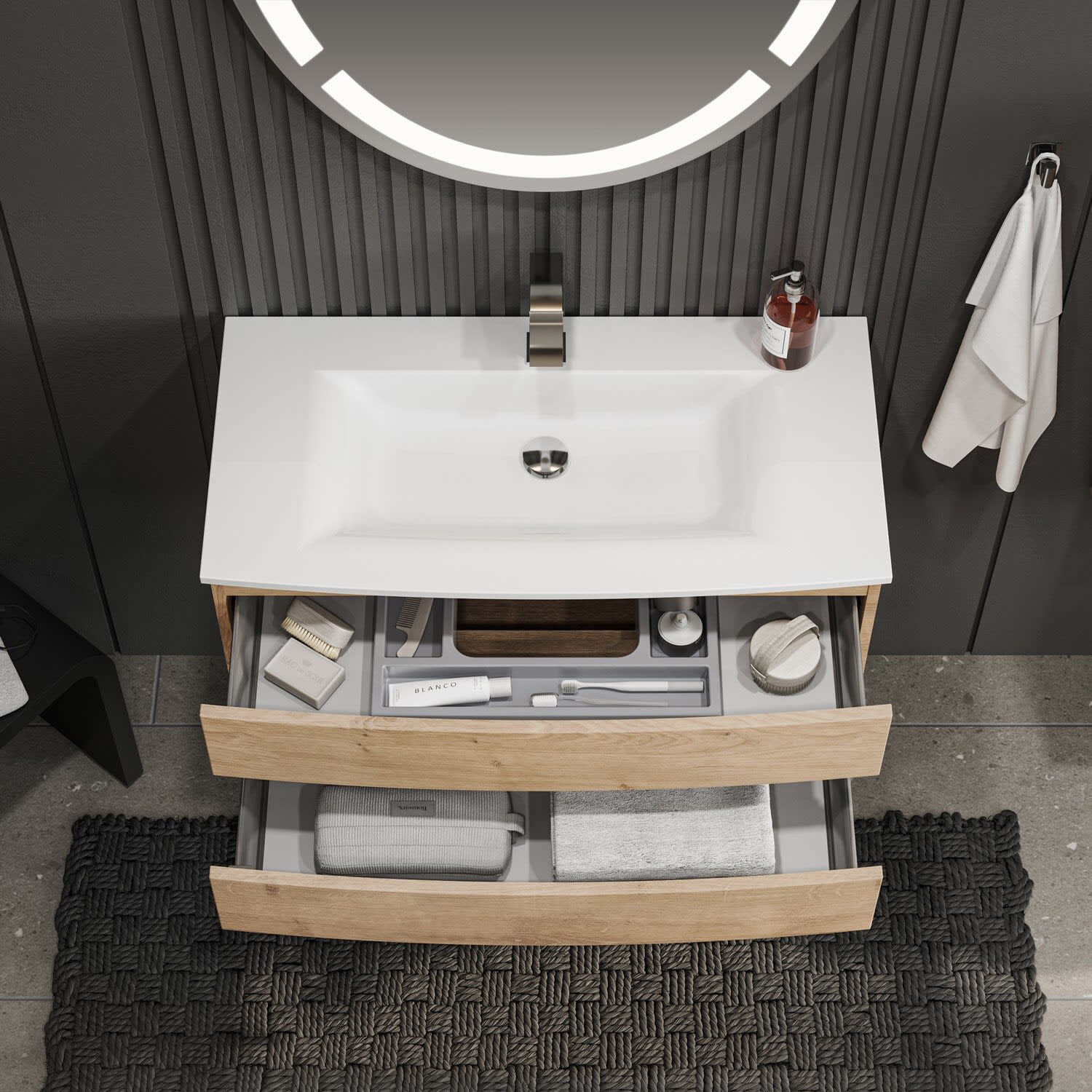 - 1 Metallschubkasten mit Einzugsdämpfung und Siphonausschnitt inkl. OrgaBase