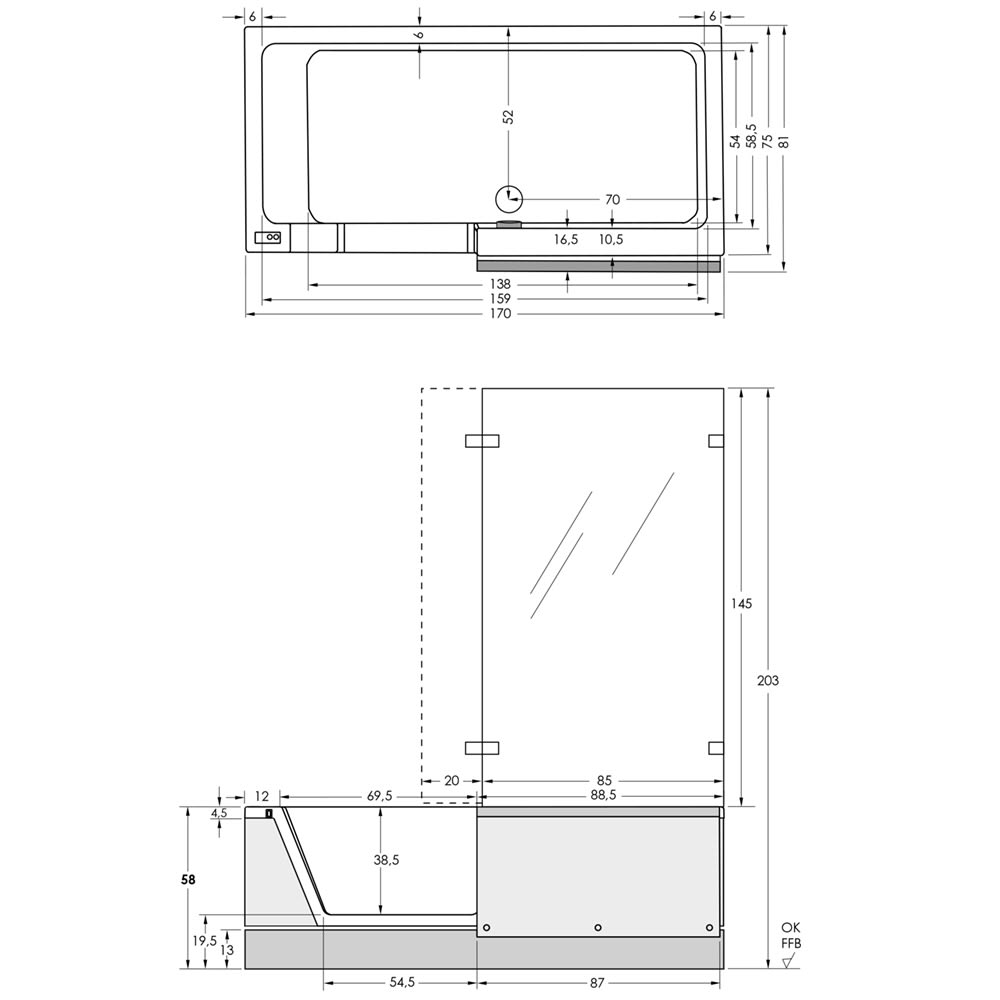 Repabad Easy-in Badewanne 170 Türe links Nischeneinbau, mit Glasabtrennung