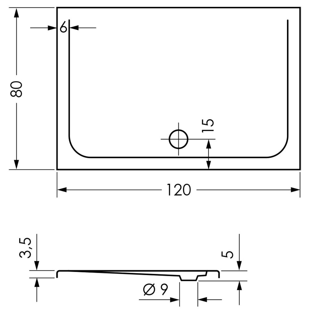 Repabad Como Rechteck Duschwanne 120 x 80 cm