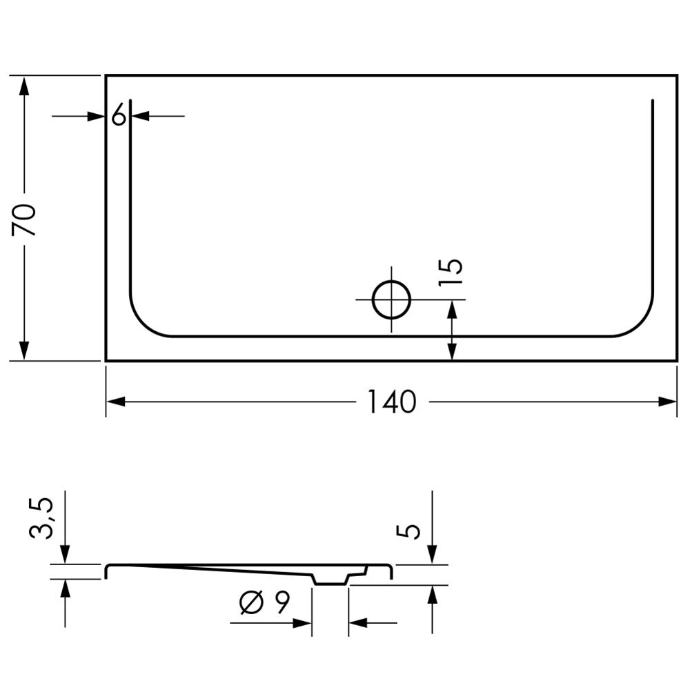 Repabad Como Rechteck-Duschwanne 140 x 70 cm