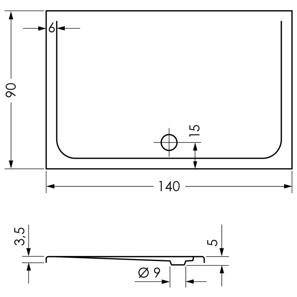 Repabad Como Rechteck-Duschwanne 140 x 90 cm