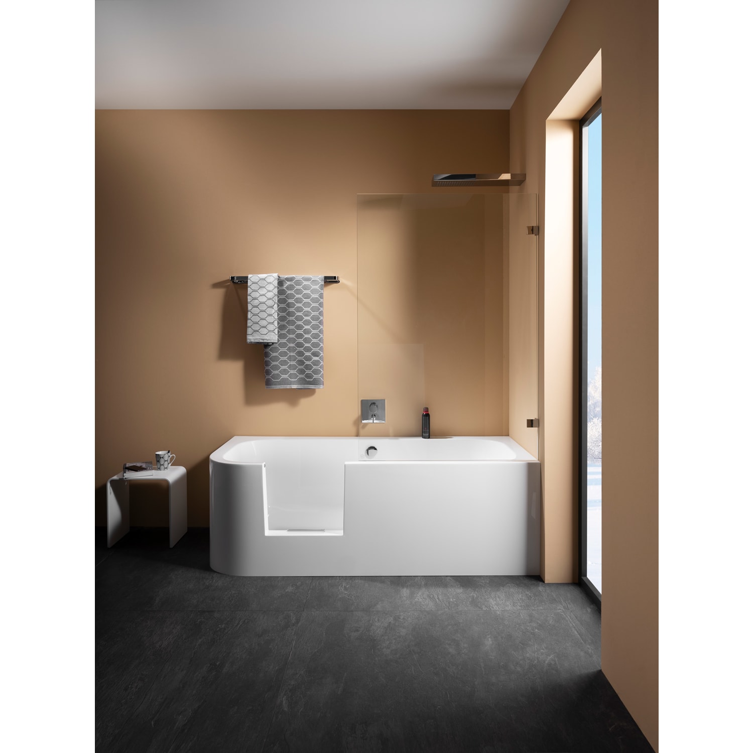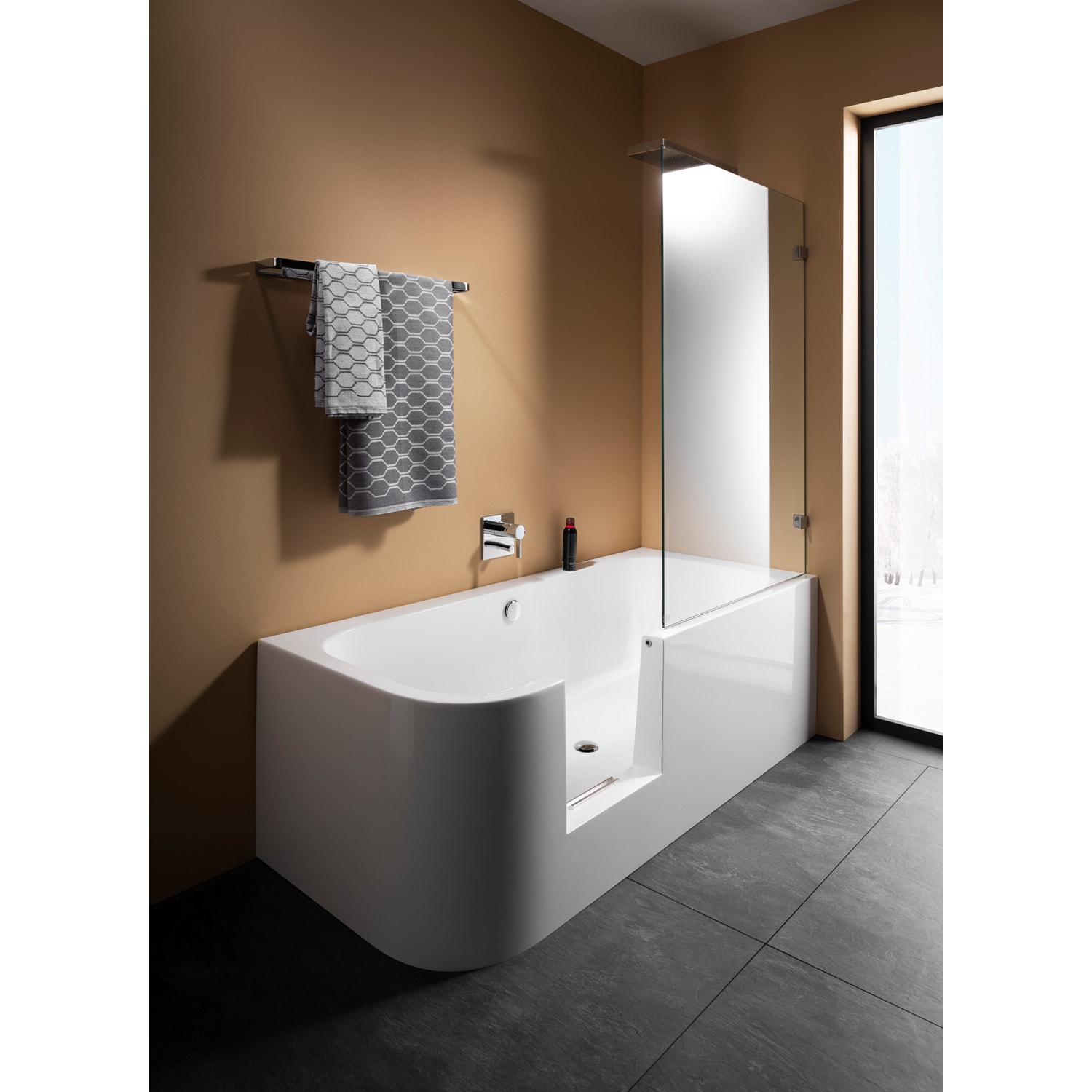 - die Duschbadewanne bietet mit einer Einstiegshöhe von 22 cm den Komfort des leichten Begehens