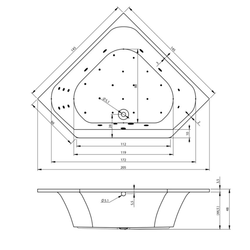 Riho Austin Whirlpool 145 x 145 cm mit Bliss Whirlsystem, Version rechts