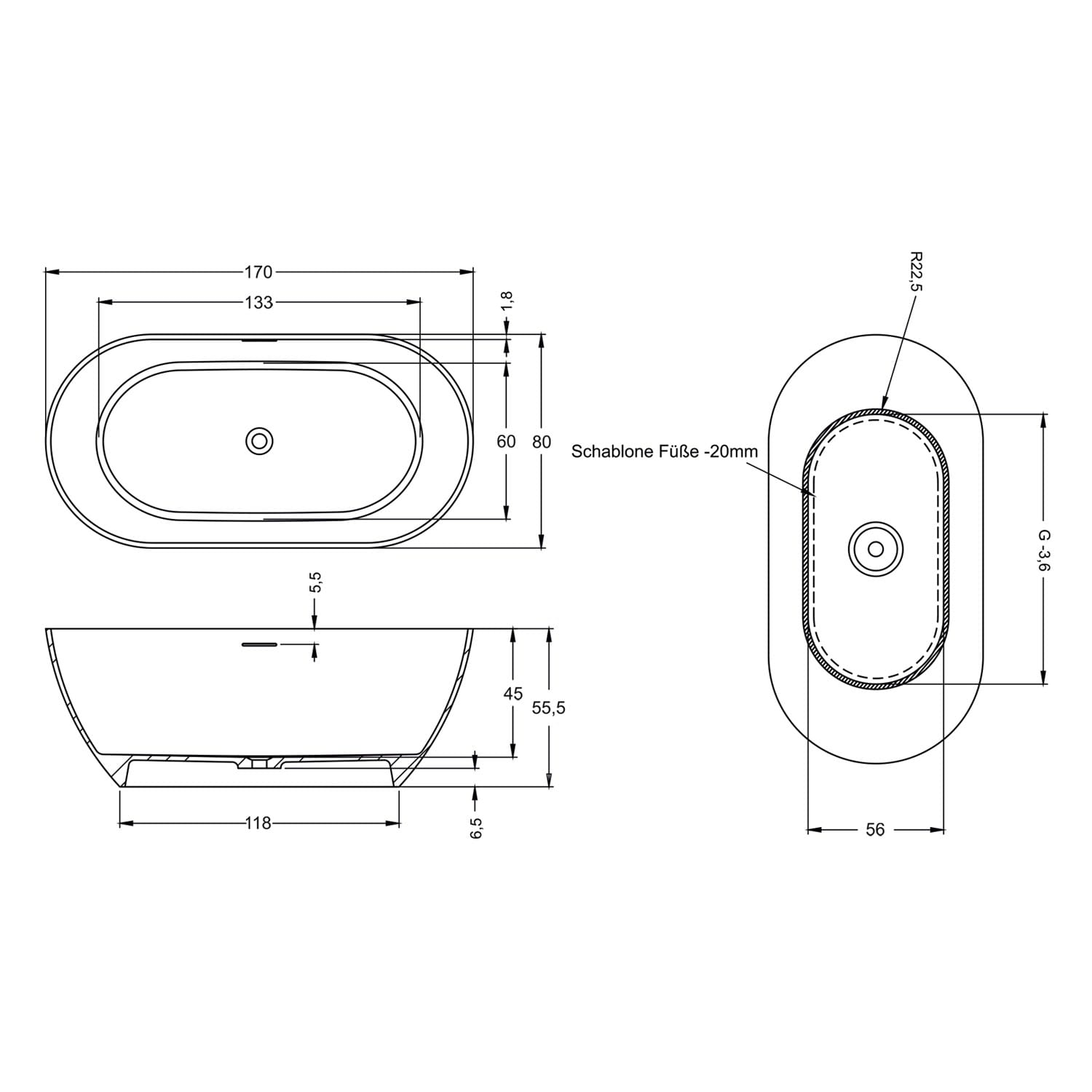 Riho Bilbao freistehende Badewanne 170 x 80 cm