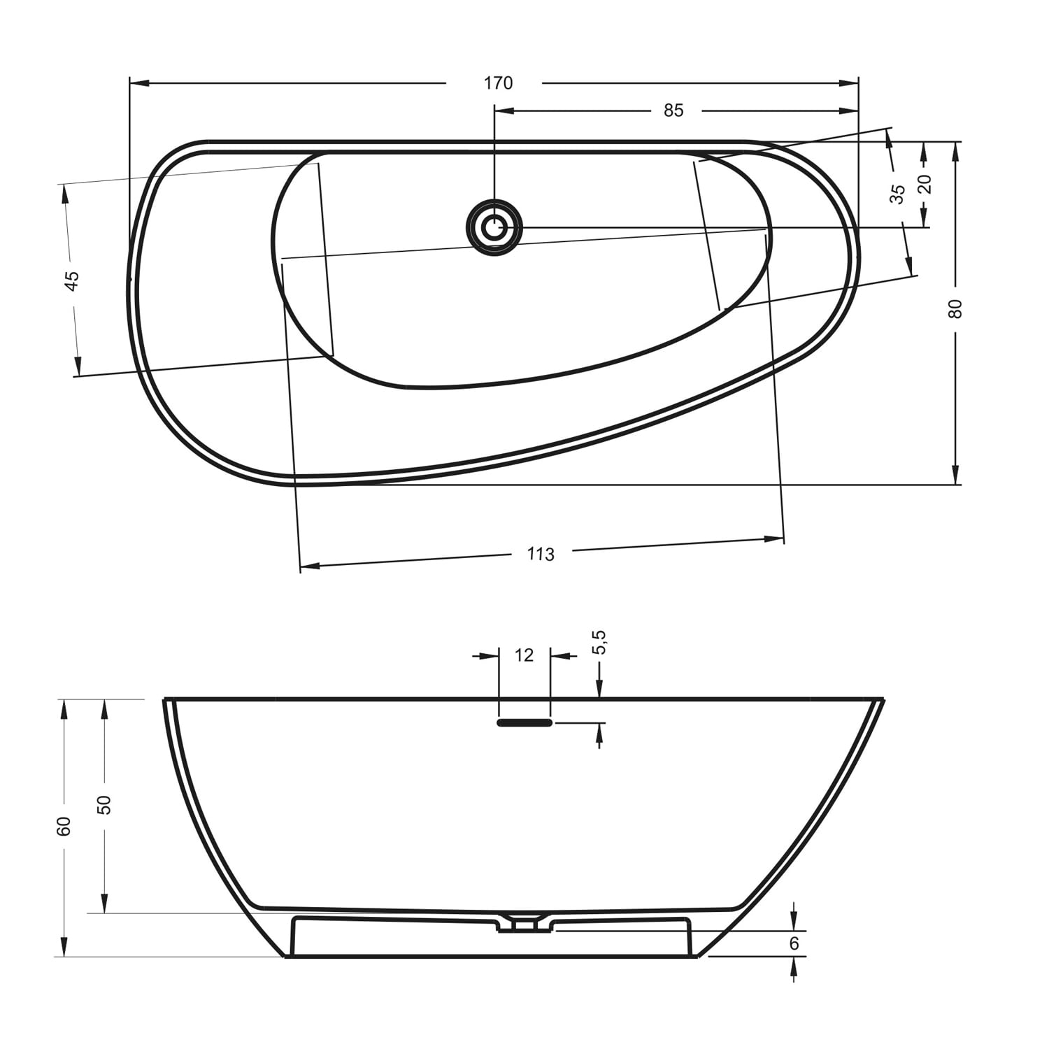 Riho Granada freistehende Badewanne 170 x 80 cm, Ausführung rechts