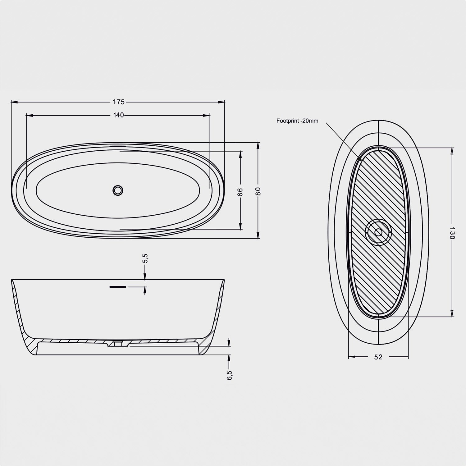 Riho Oval Solid-Wanne 170 x 80 x 56,5 cm