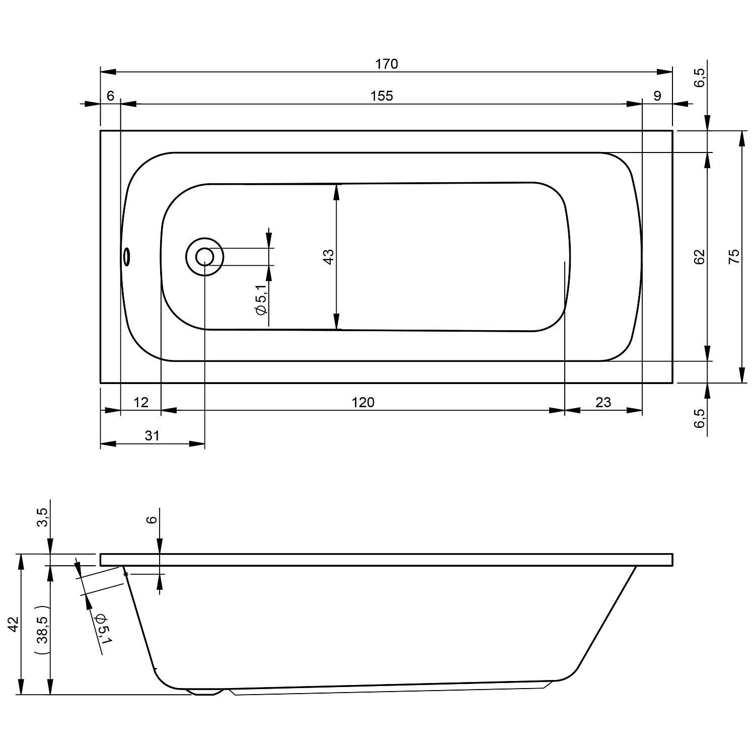 Riho Dola Rechteck-Badewanne 170 x 75 cm