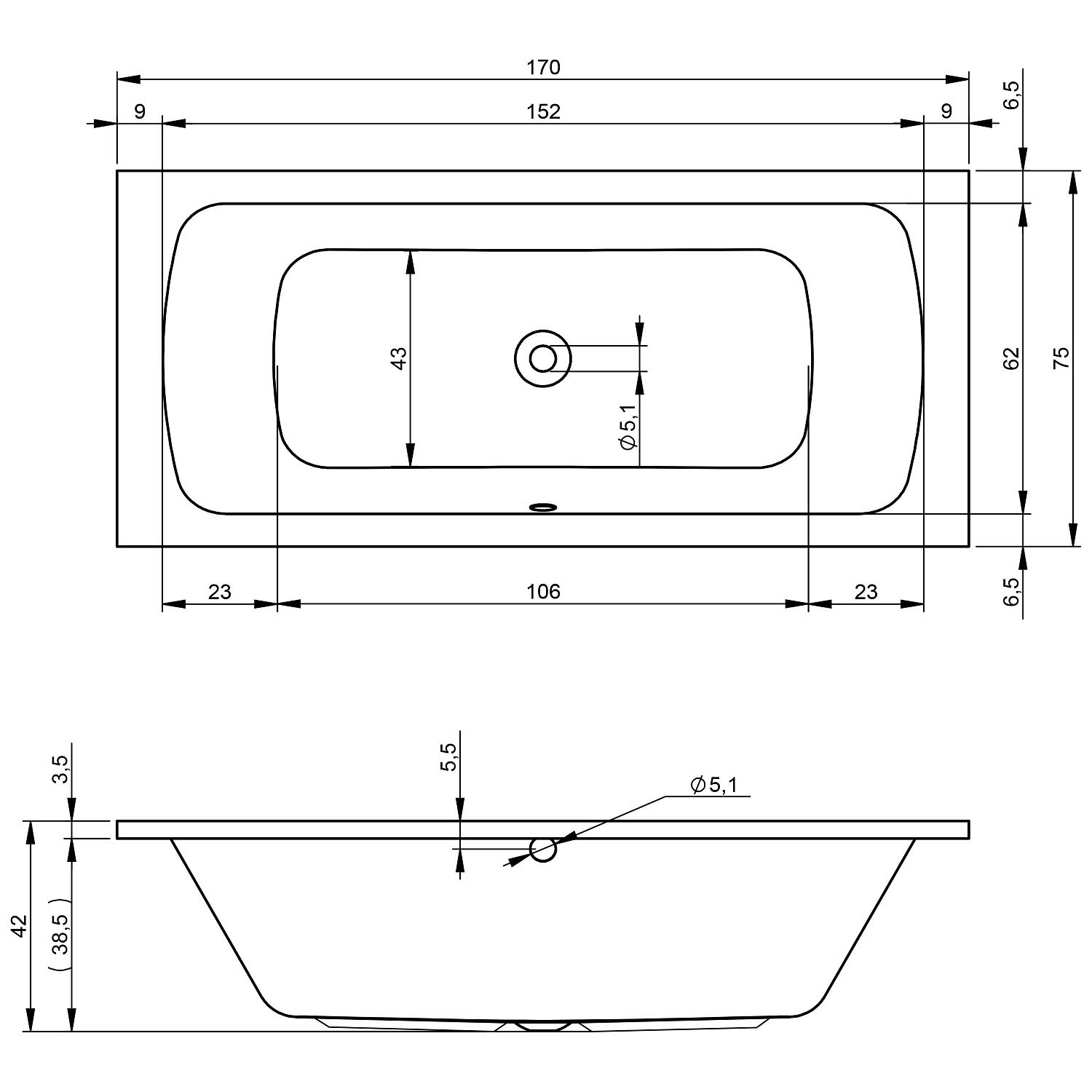 Riho Dola Rechteck-Badewanne 170 x 75 cm 2-Sitzer