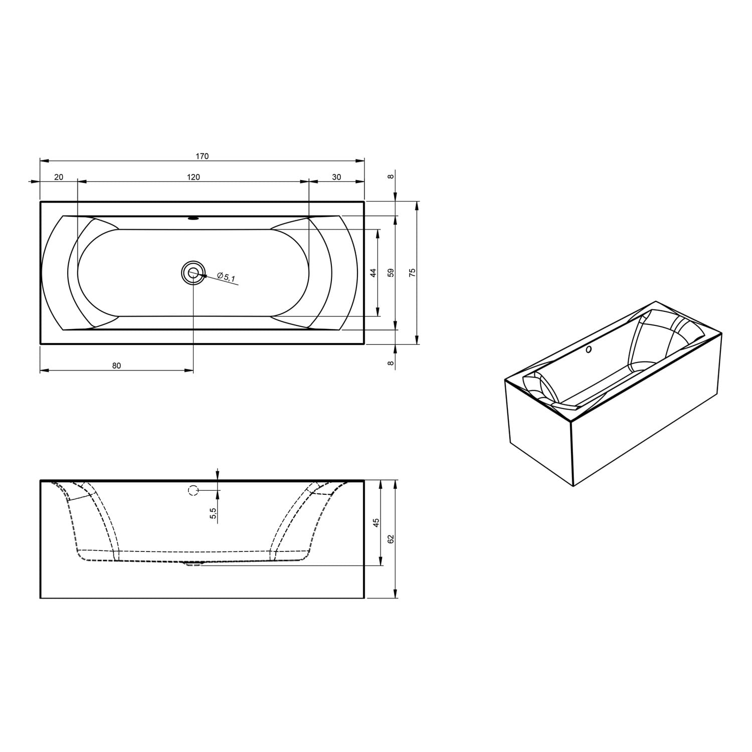 Riho Linares Rechteck-Badewanne, Plug & Play, Back-2-Wall links, 170 x 75 cm