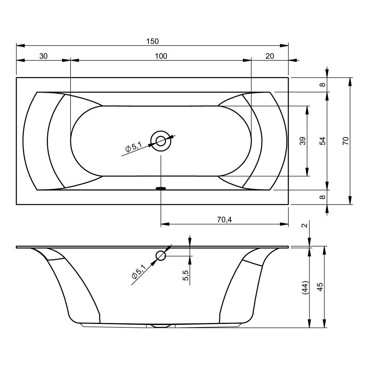 L: 150 B: 70 H: 45 cm