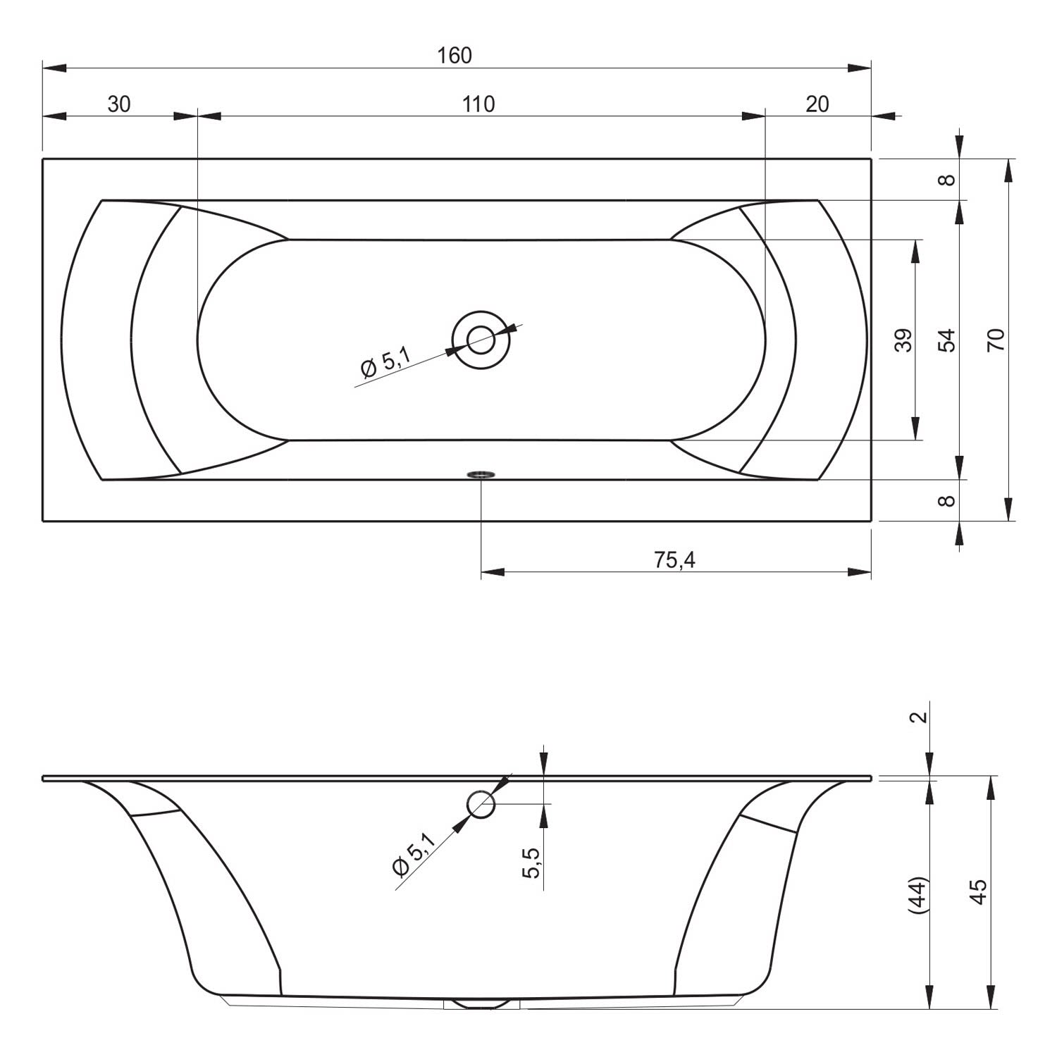 - Ab- und Überlauf mittig