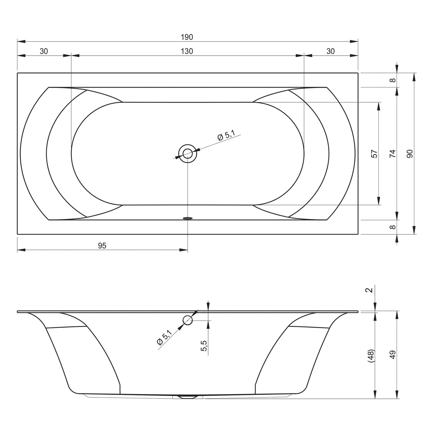 - Ab- und Überlauf mittig